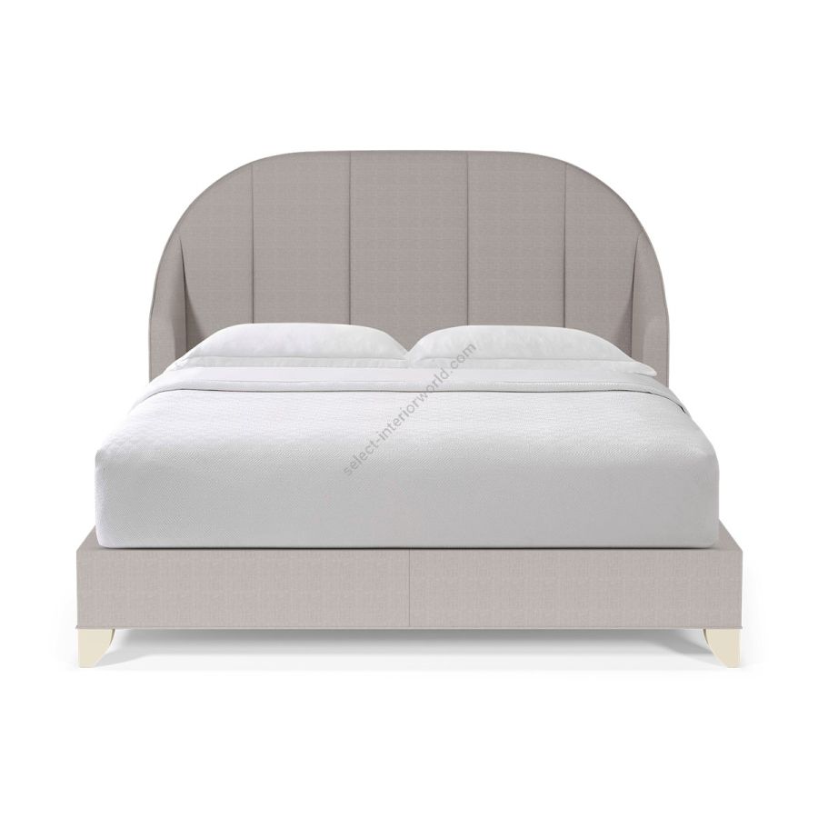 A beautifully romantic bed with a low bed base, with a gently tapering shelter headboard featuring fanning seamlines in a Deco-inspired style. Simply delightful!