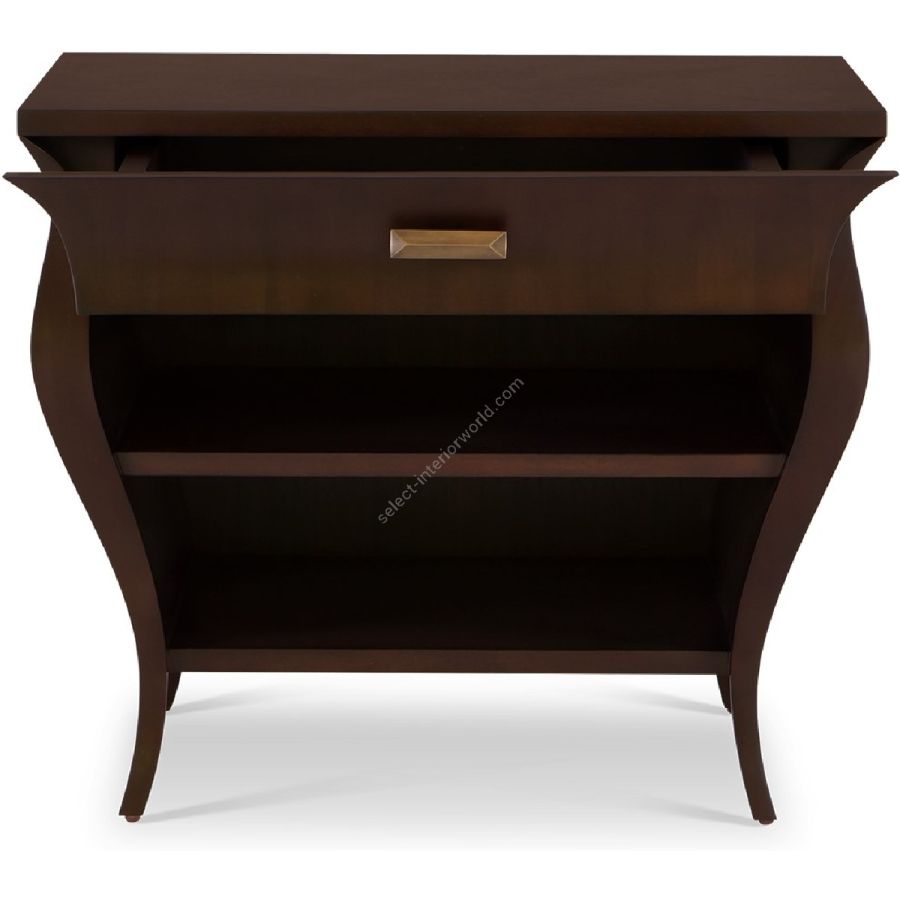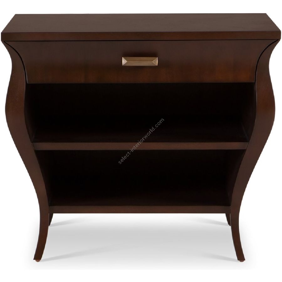 Elegantly tapering curved sides enclose a drawer and two shelves in this expertly hand carved nightstand. Practical and beautiful this is a new classic!