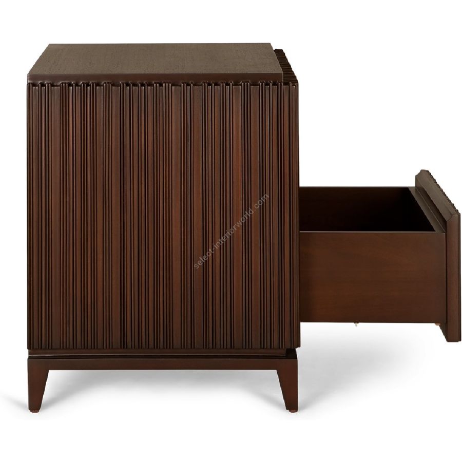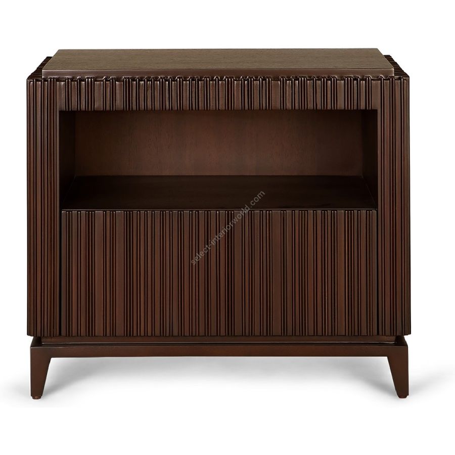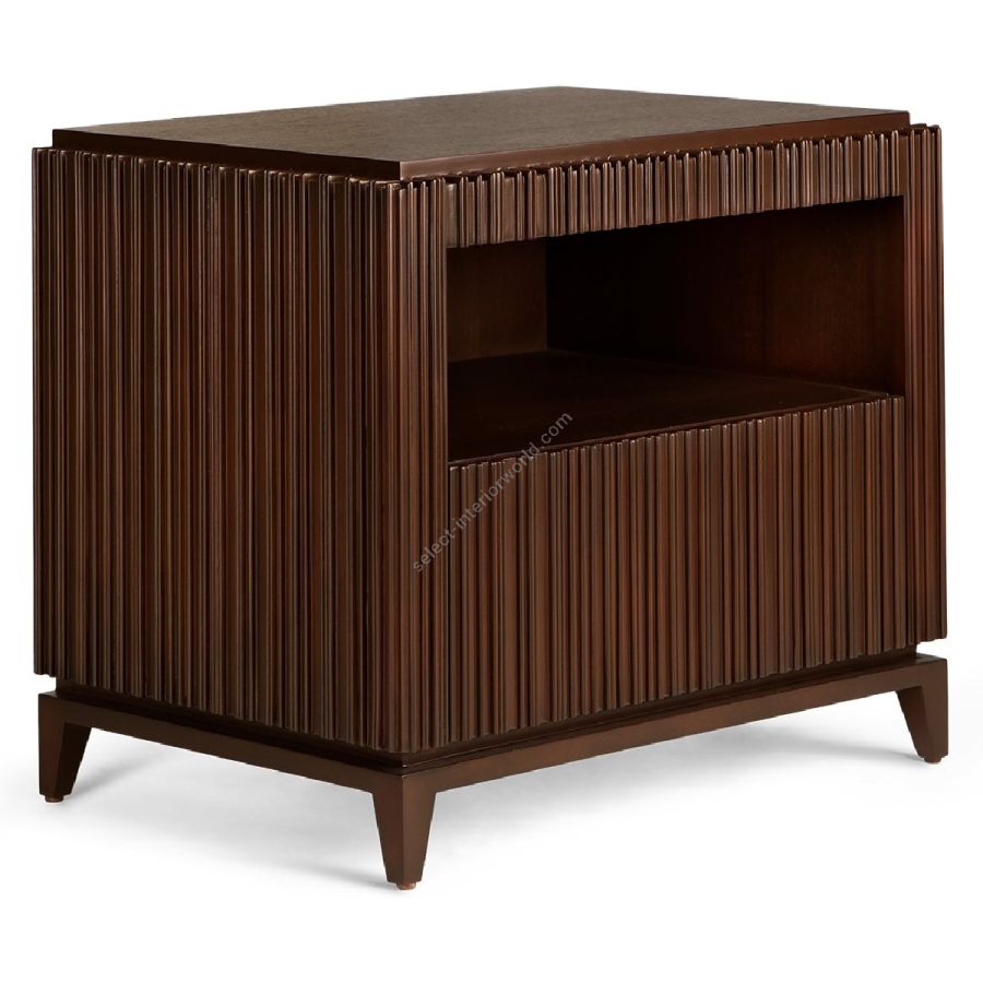 The signature Chez Harrods design of expertly hand carved ribbed wood is stunningly displayed on this nightstand. Featuring an inset shelf and discreet drawer, this is the perfect piece to complement any bedroom style.