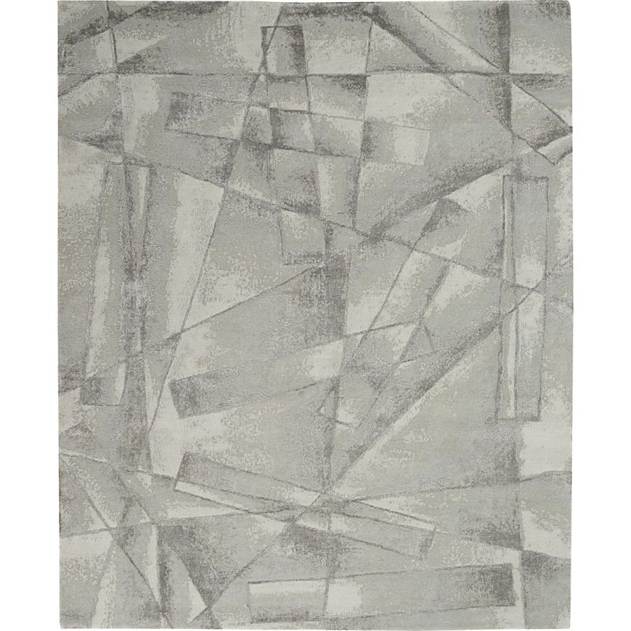 Abstract geometric paths purposefully intersecting to create a fragmented, balanced, but delicate Promenade. Sharp, crisp and confidently modern. Tibetan and crafted of New Zealand Wool with beautifully detailed raised silk design... 'angulaire abstract'.
