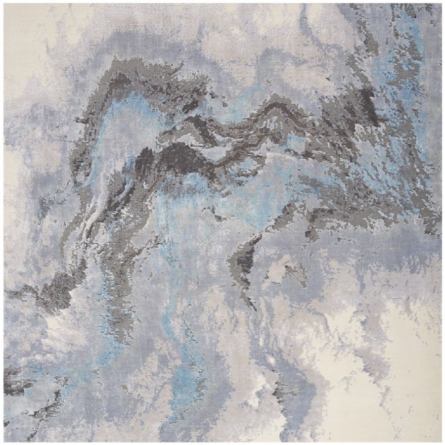 This breathtaking Christopher Guy rug perfectly encapsulates the beauty of nature in abstract form. Soft layers of grey and blue wash over its ivory ground like wisps of clouds, creating a sense of calm. Hand-knotted from the finest blend of silk and New Zealand wool.