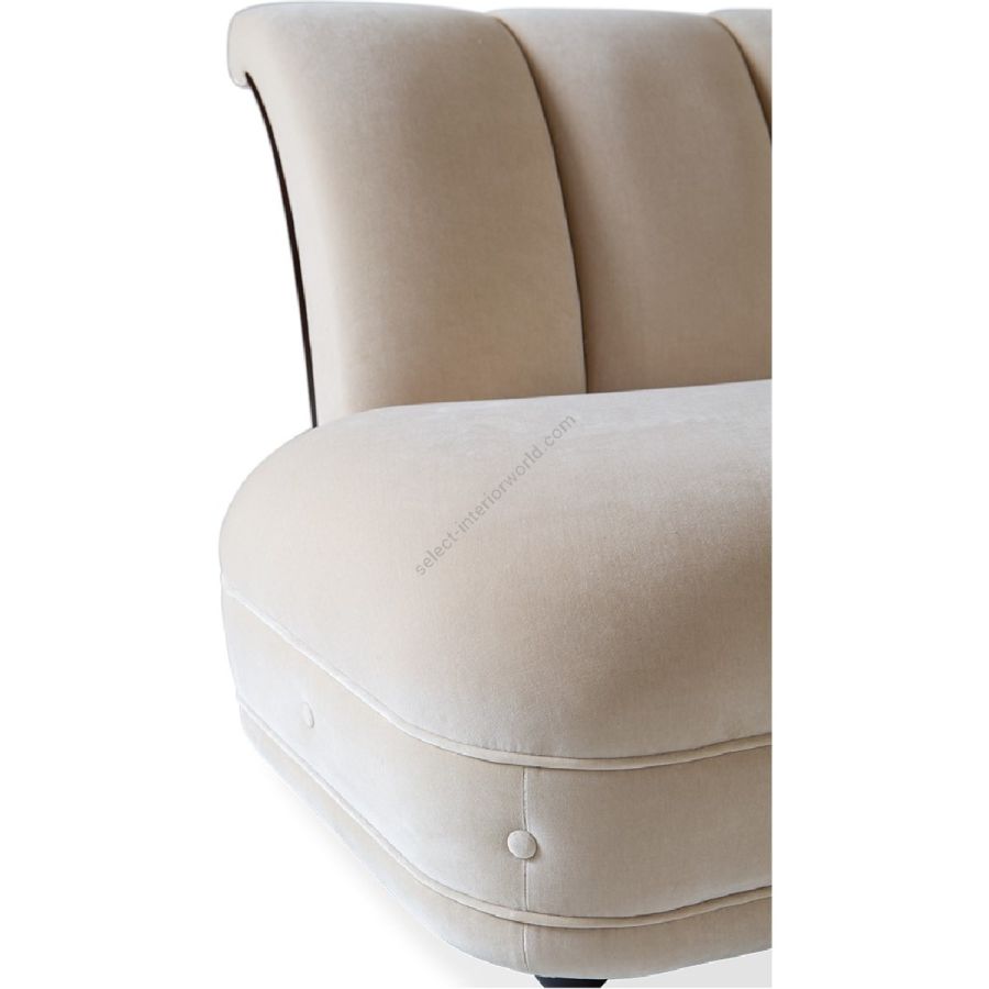 Doweled mortise and tenon frame in solid Mahogany from certified source. Eight-way hand tied springs. Channeled backrest. Available in a selection of finishes. Sectional knockdown for spaces with limited access. For residential use only. Commercial use is classified as Special Order Design (SOD), and alternative materials may be required. Contact us for details.