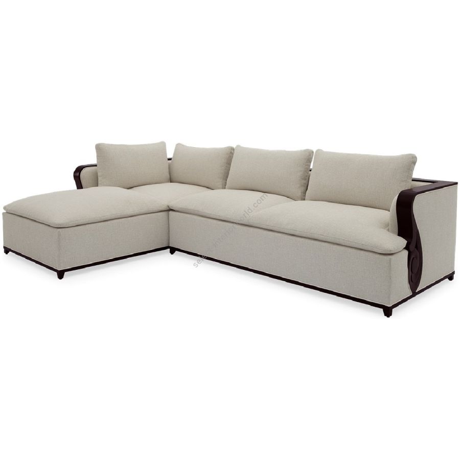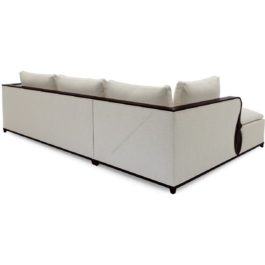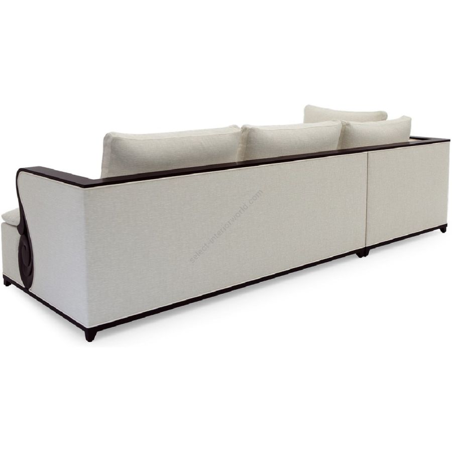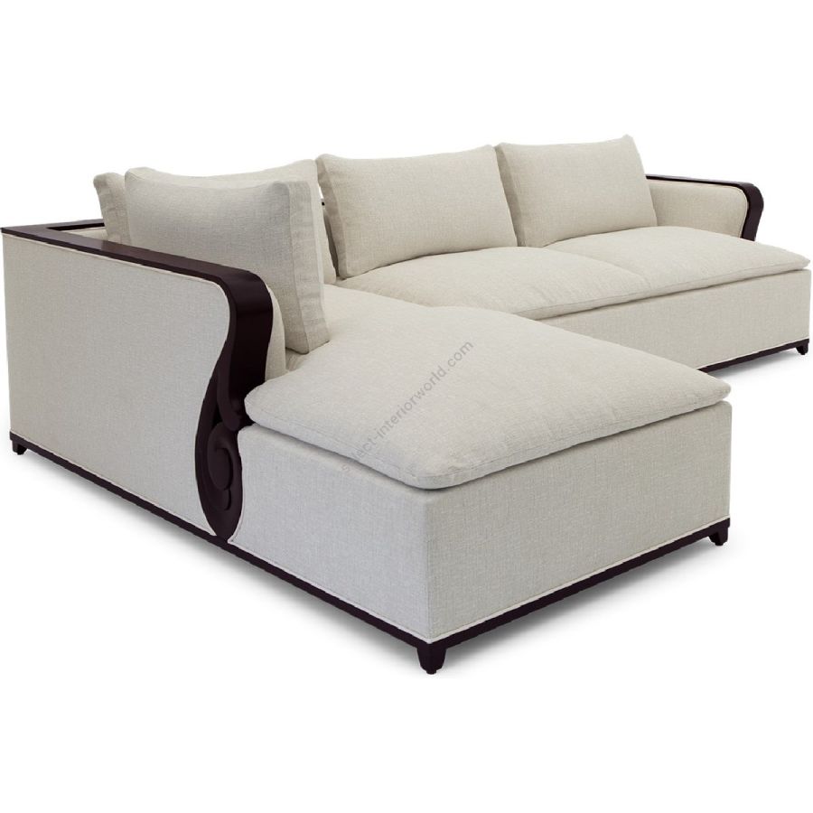 A fabulously chic sectional sofa, originally designed by Christopher for his city apartment, featuring unique hand carved solid mahogany details and frame.