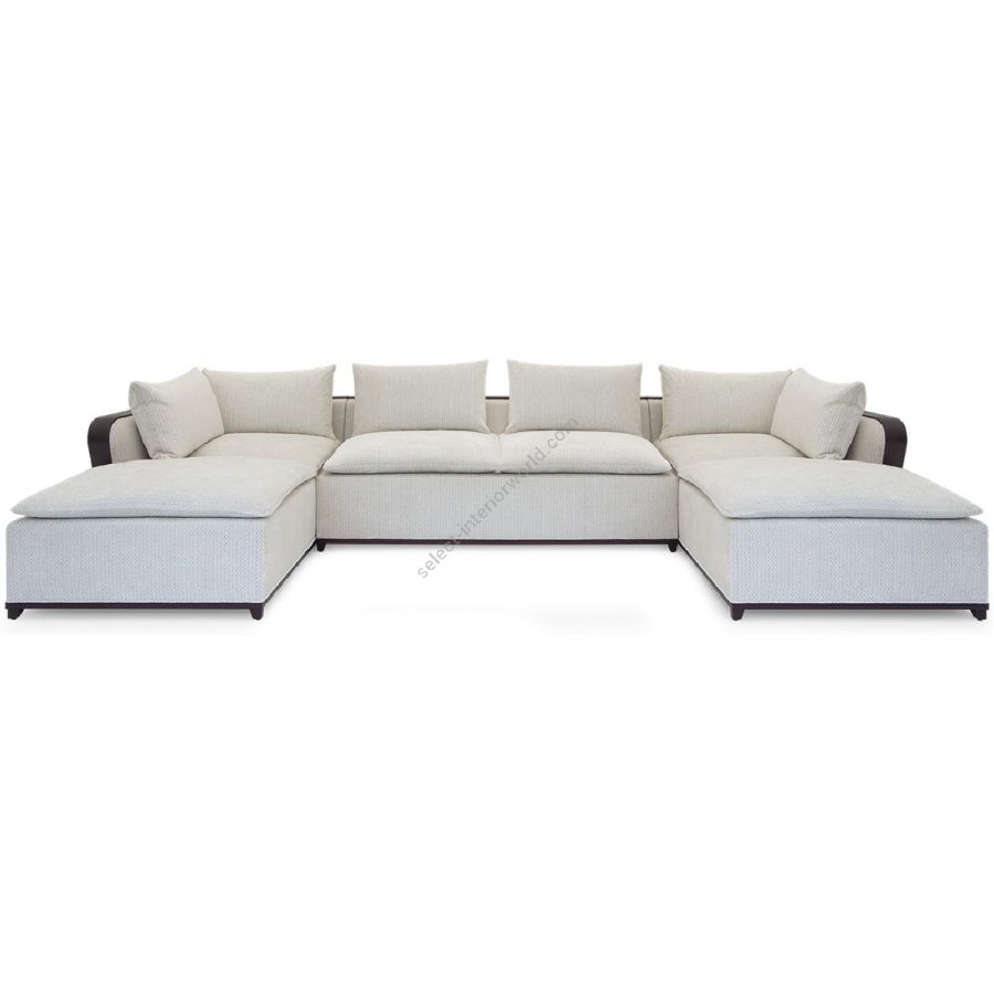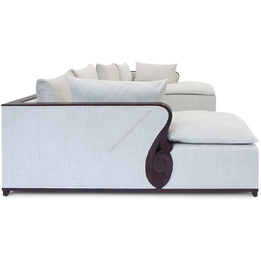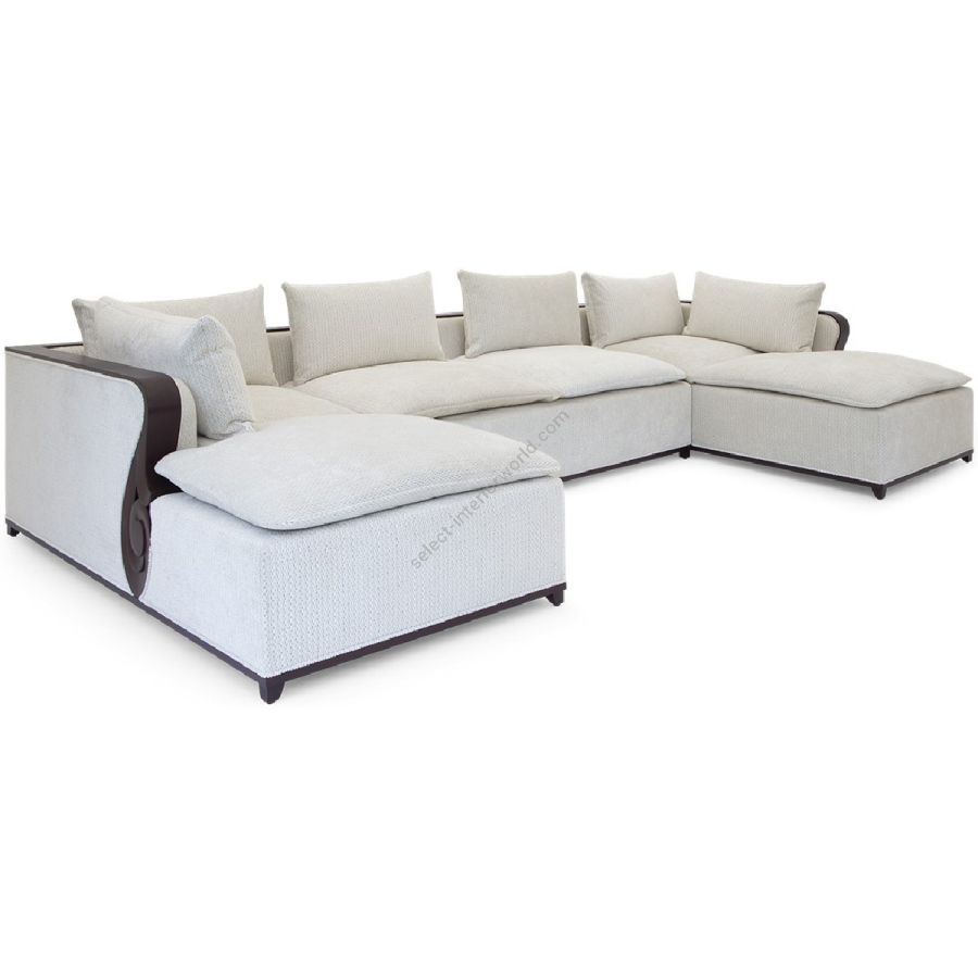 With an Art Deco elegance and restraint, this U-shaped sectional sofa features a carved wood framed straight back and deep square cushioning. An utterly chic centrepiece for setting.