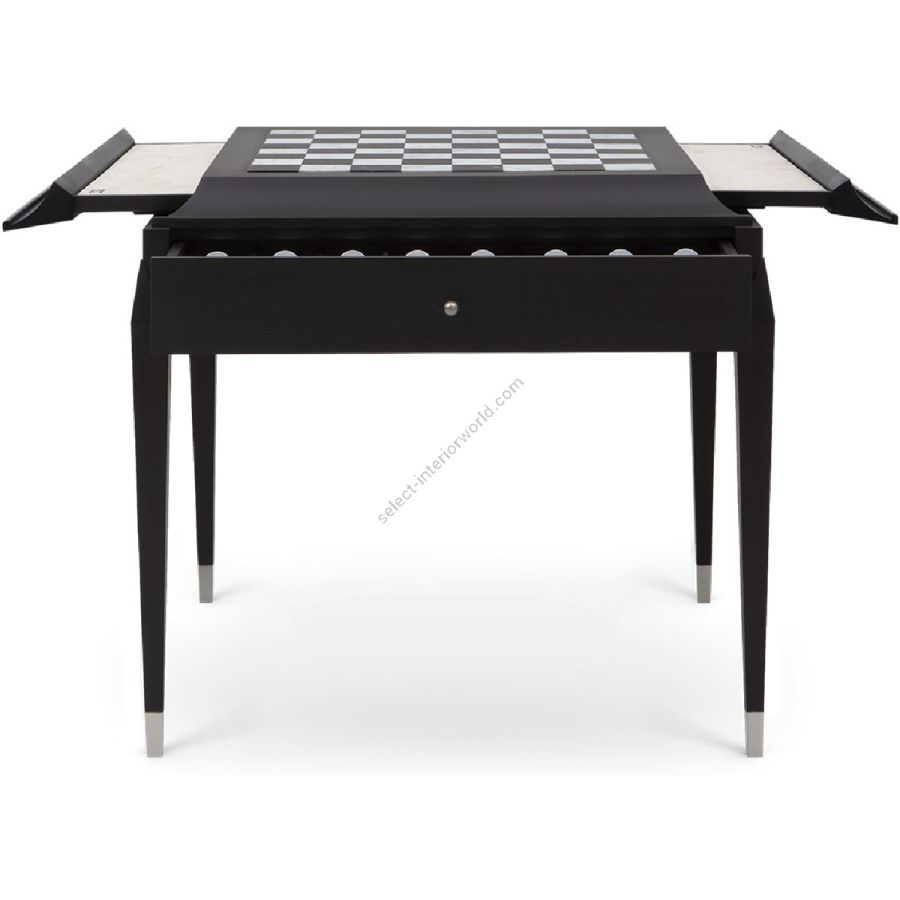 Named after Chantal Chaudé de Silans, the most famous French female chess player, this simply extraordinary hand-crafted wooden games table is a masterpiece of design and craftsmanship. The checkered top is made from carefully sourced Nero Marquina and white Carrara marbles. Pull-out shelves create rests for the pieces during games, and drawers house the pieces, while the tips of its finely crafted legs are with metal finish for an elegant touch.