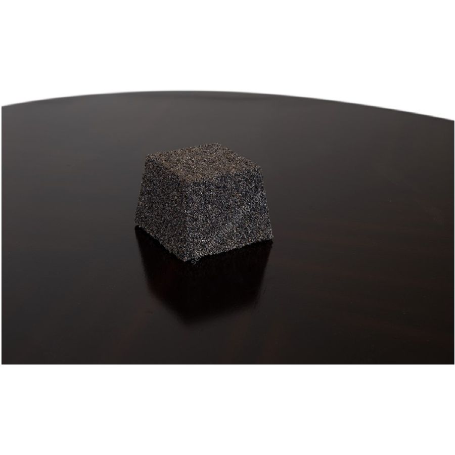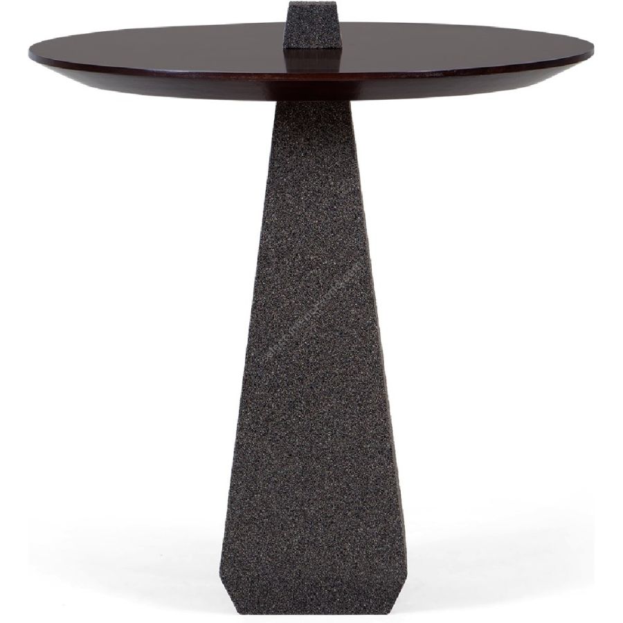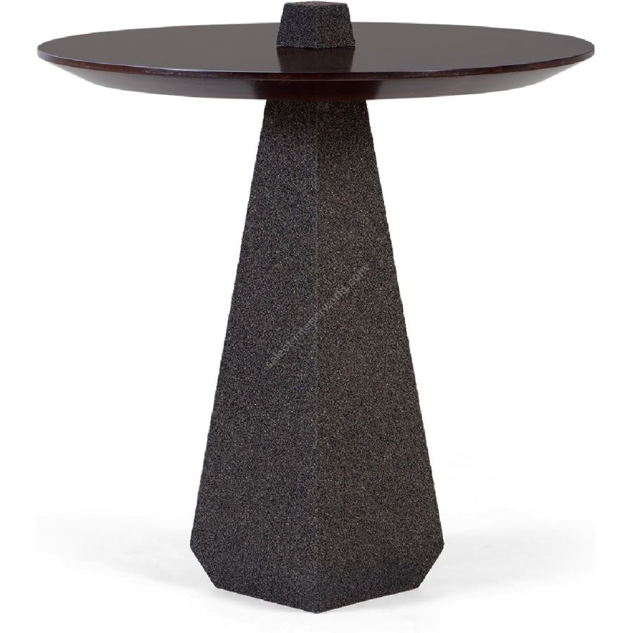 A striking and highly original side table featuring an obelisk base emerging from the round beveled tabletop in a squared pinnacle. Exquisitely hand carved and with the base as standard finished in the exclusive CG sparkling Moondust.