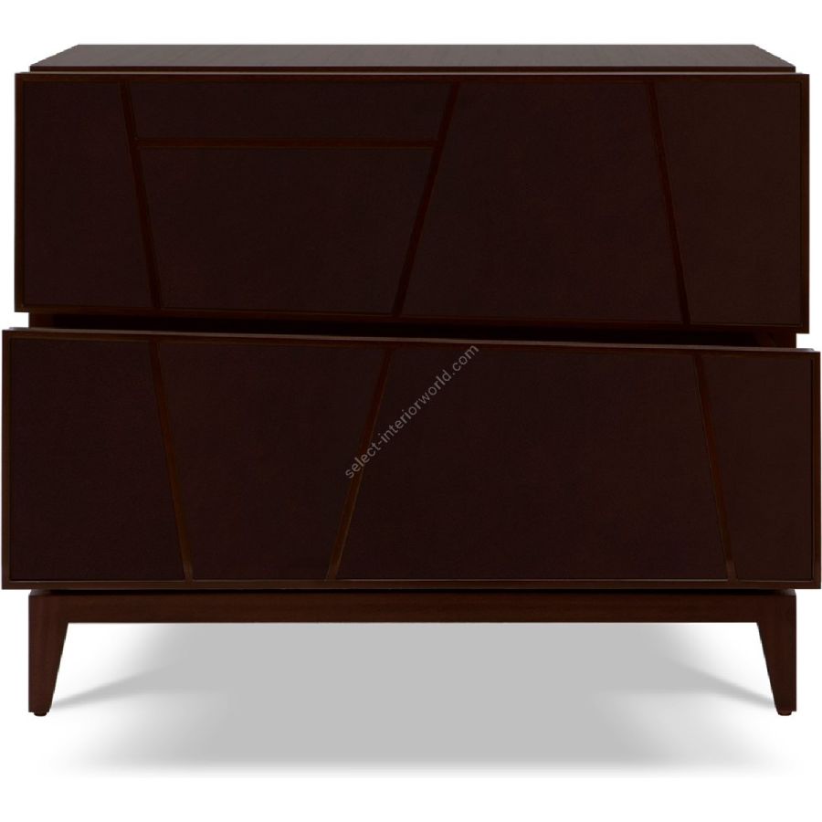 Named after the famous contemporary French architect, a striking nightstand with two drawers, hand carved in wood on an elegant wood base, and clad in geometric shaped leather panels.