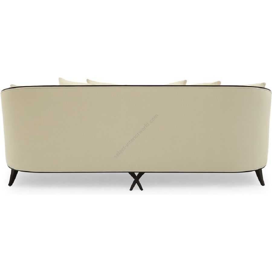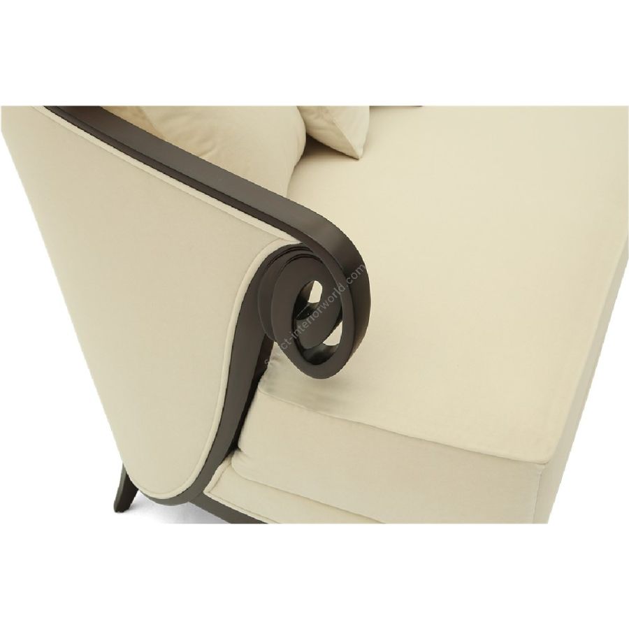 This striking sofa features hand-carved scrolls adorning the armrests that lead effortlessly into the curved hind legs.