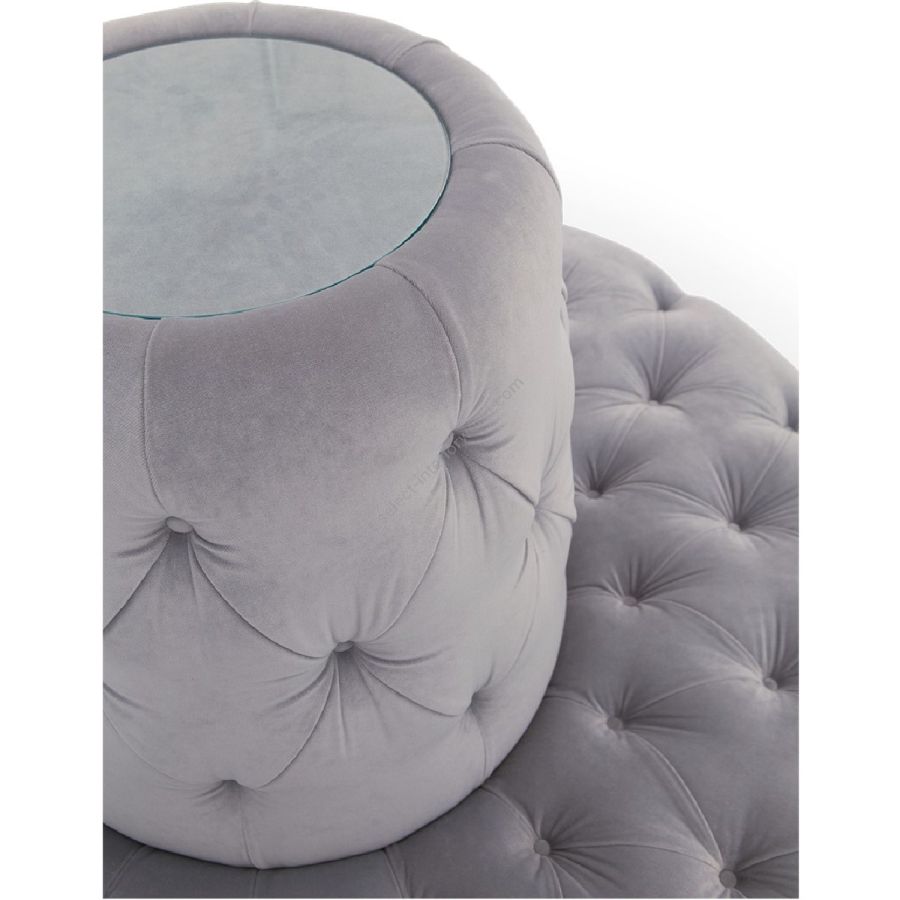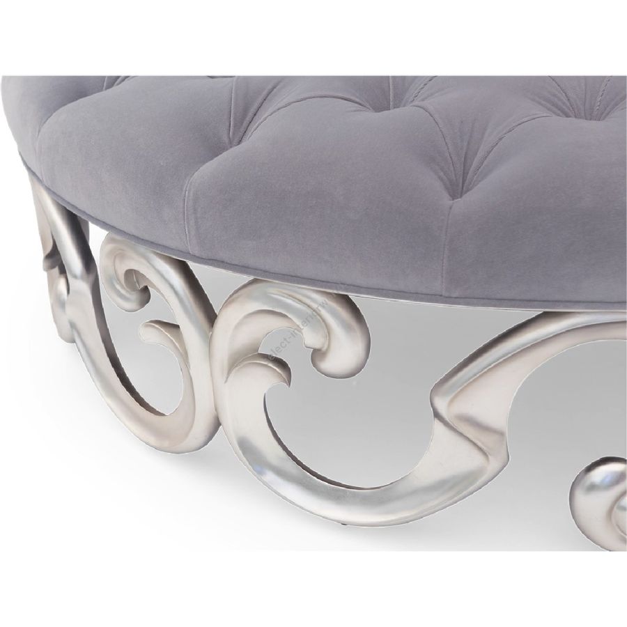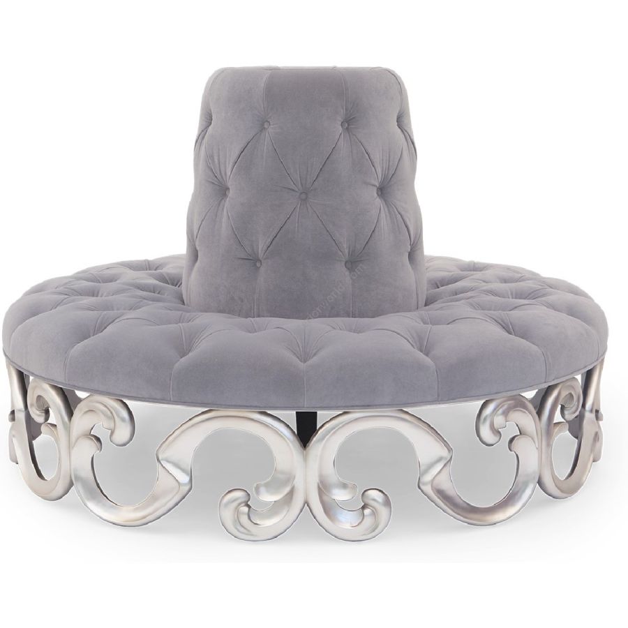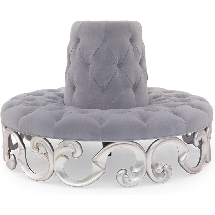 With its elegantly hand carved sweeping curved base and sumptuous upholstery, this round conversation seat is an exceptional accent piece for lobbies and grand entrances.