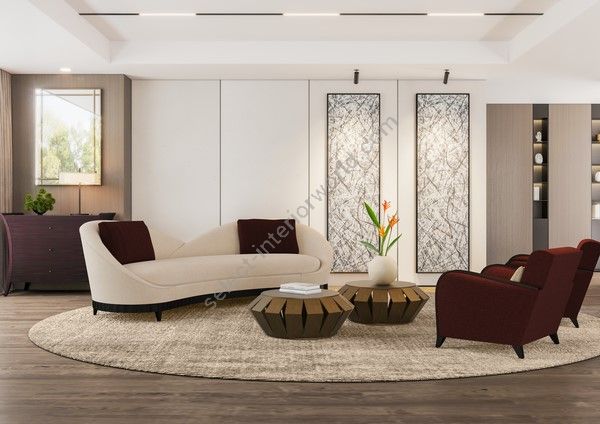 Doweled mortise and tenon frame in solid Mahogany from certified source. Sculptured by our Master-Carvers. Solid certified Mahogany. Tight seat undersupport with high-density upholstery fill. Feathered down throw pillows mixed with PolyFiber for added support. Available in a selection of finishes. For residential use only. Commercial use is classified as Special Order Design (SOD), and alternative materials may be required. Contact us for details.