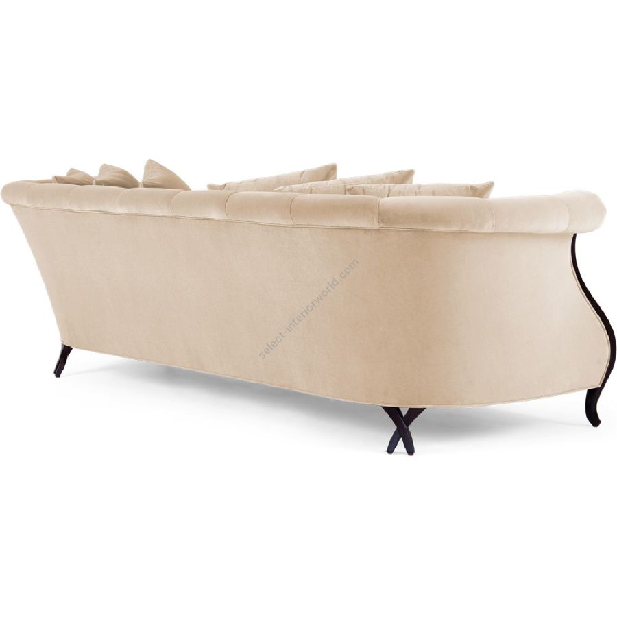 This sumptuous three-seater sofa features a horseshoe back with curved front and double Chris-cross back legs for an imposing yet elegantly styled piece. Also available as a club chair (60-0516), and as two-seater and extended sofas (60-0517 and 60-0519).