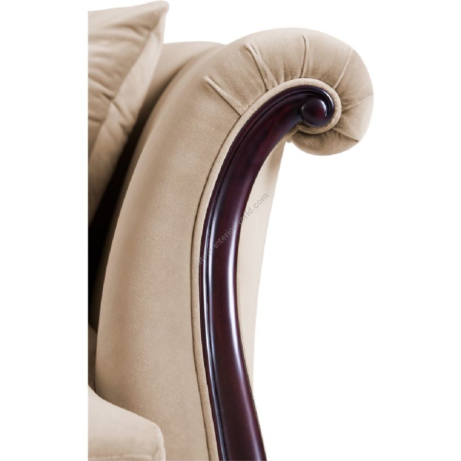 Doweled mortise and tenon frame in solid Mahogany from certified source. Hand-Carved details. Eight-way hand tied spring base, with pocket coil seat cushions encased in high-resilient fill and feathered down jacket. Feathered down throw pillows mixed with PolyFiber for added support. Channeled backrest. Available in a selection of finishes. For residential use only. Commercial use is classified as Special Order Design (SOD), and alternative materials may be required. Contact us for details.