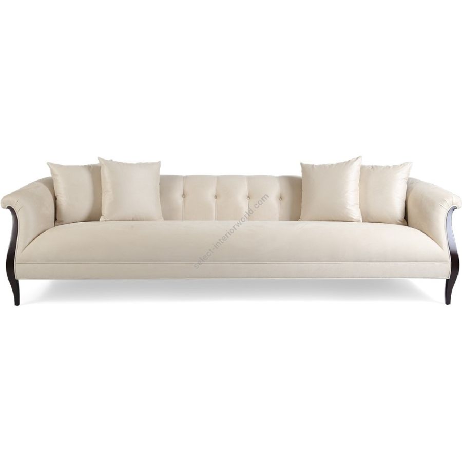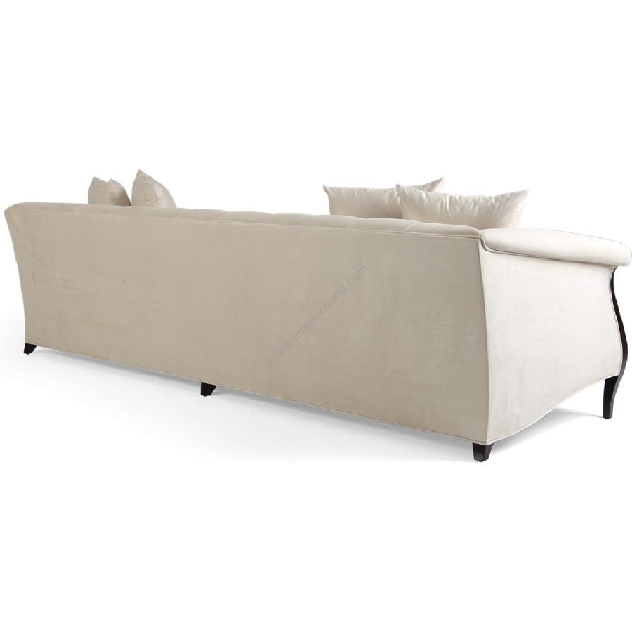 Doweled mortise and tenon frame in solid Mahogany from certified source. Hand-Carved details. Eight-way hand tied spring base, with pocket coil seat cushions encased in high-resilient fill and feathered down jacket. Feathered down throw pillows mixed with PolyFiber for added support. Single row buttoned tufting oozing a modern elegance. Available in a selection of finishes. For residential use only. Commercial use is classified as Special Order Design (SOD), and alternative materials may be required. Contact us for details.