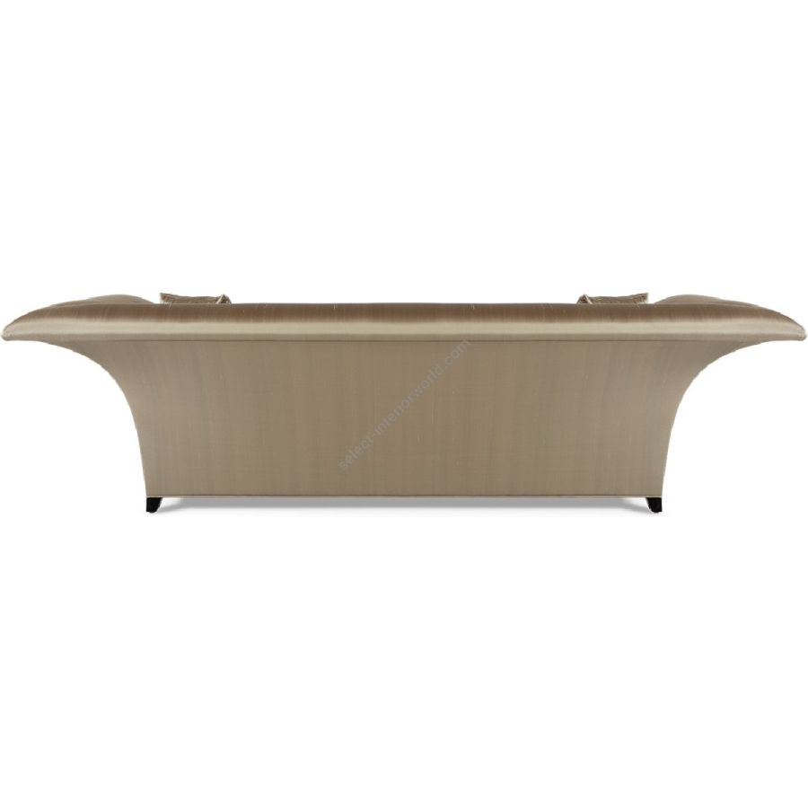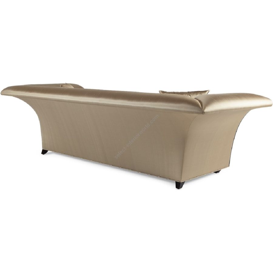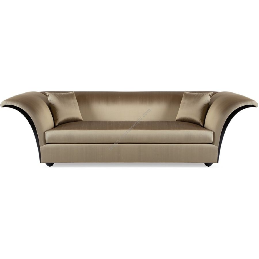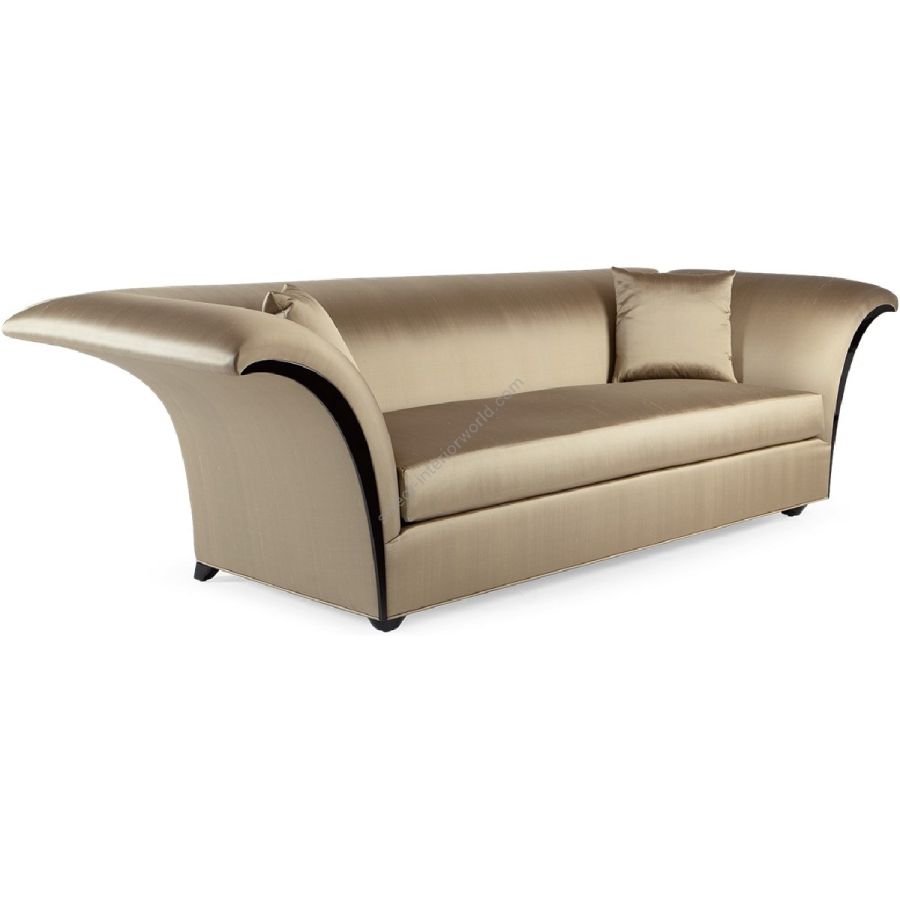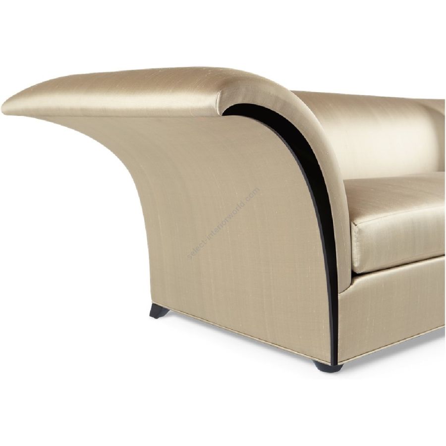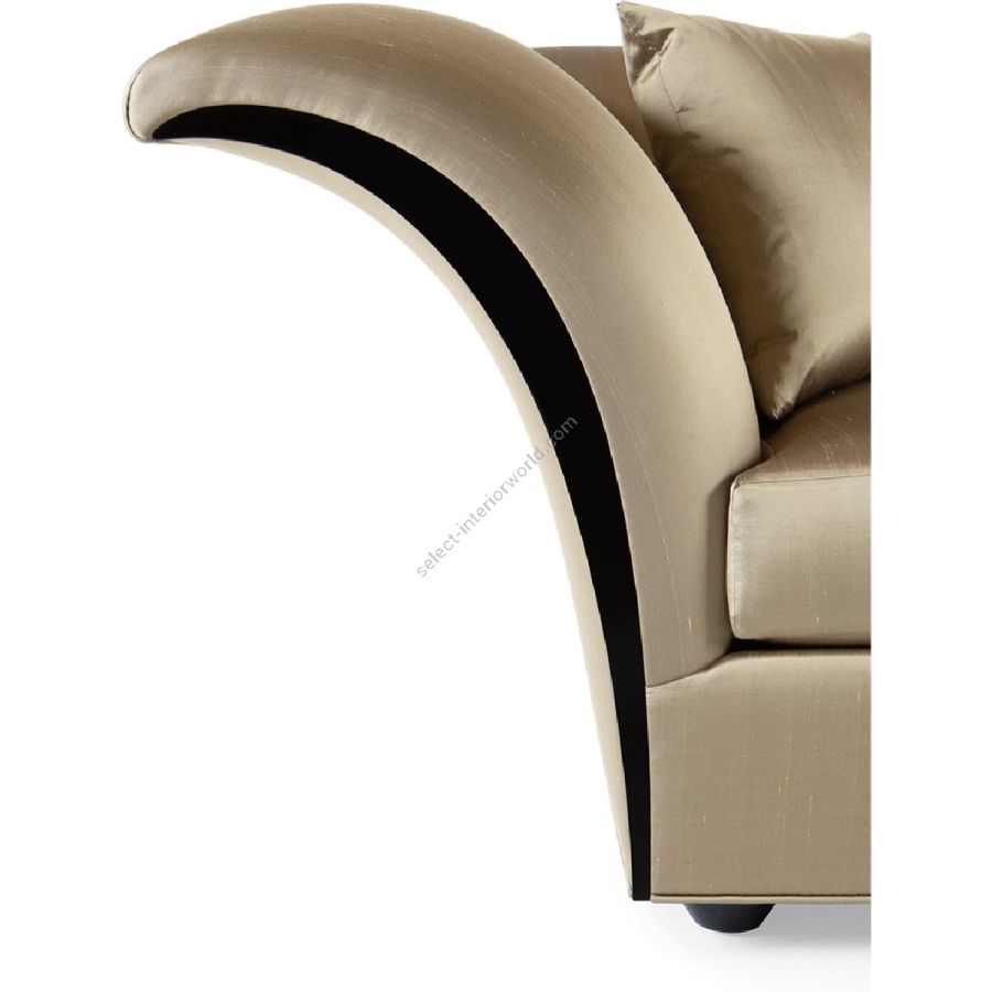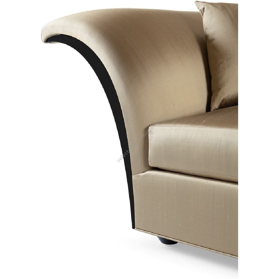 High sweeping sides with mahogany detailing soften the squared frame and sleek single-seat upholstery of this spectacular sofa, creating a true modern classic.