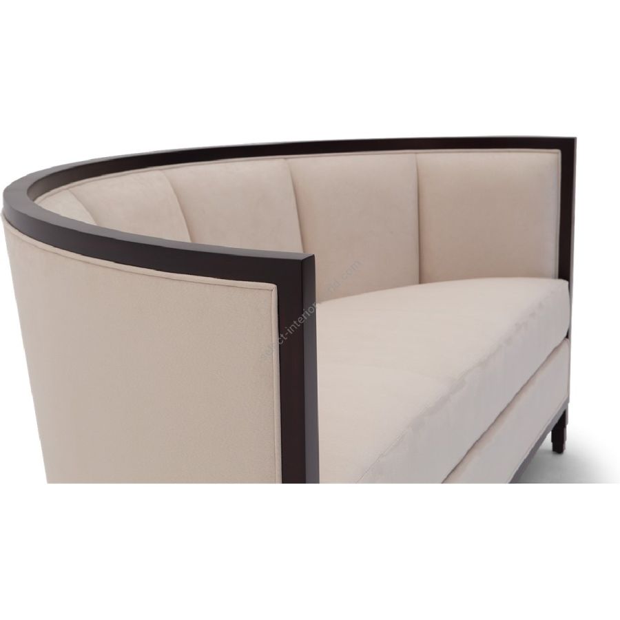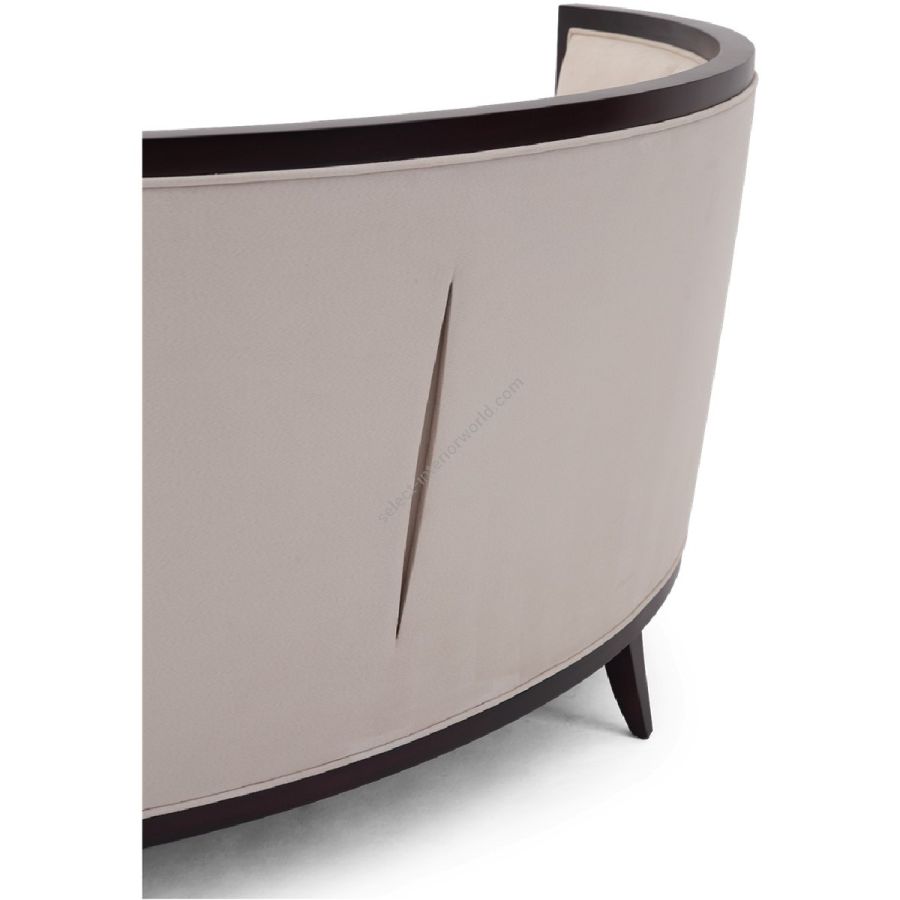 This timeless semi-circular loveseat features Christopher’s signature Silk-cut on the rear facing spine of this gently sloped backrest.