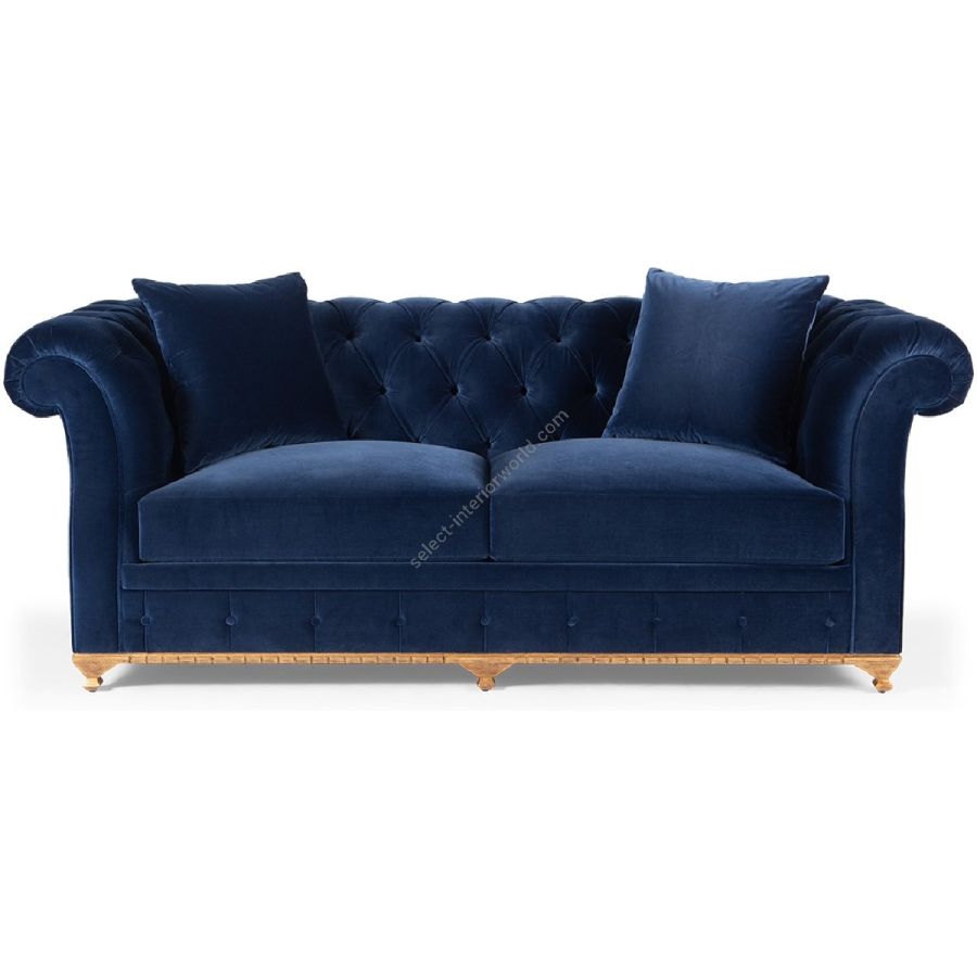 Doweled mortise and tenon frame in solid Mahogany from certified source. Hand-Carved details. Eight-way hand tied spring base, with pocket coil seat cushions encased in high-resilient fill and feathered down jacket. Feathered down throw pillows mixed with PolyFiber for added support. Diamond shaped tufting in a buttoned formation. Available in a selection of finishes. For residential use only. Commercial use is classified as Special Order Design (SOD), and alternative materials may be required. Contact us for details. For residential use only. Commercial use is classified as Special Order Design (SOD), and alternative materials may be required. Contact us for details.