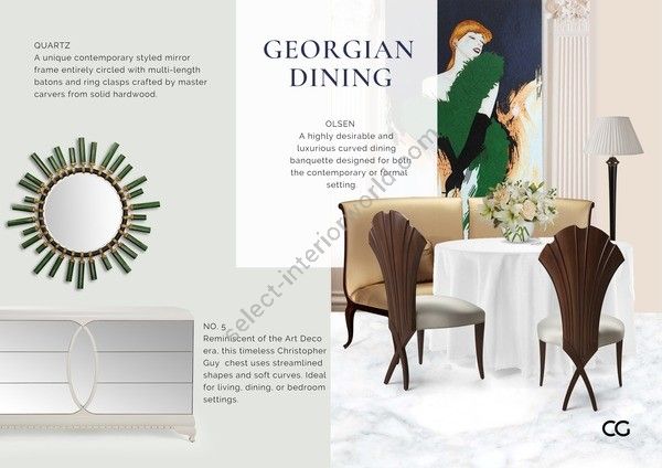 A highly desirable and luxurious curved dining banquette designed for both the contemporary or formal setting.