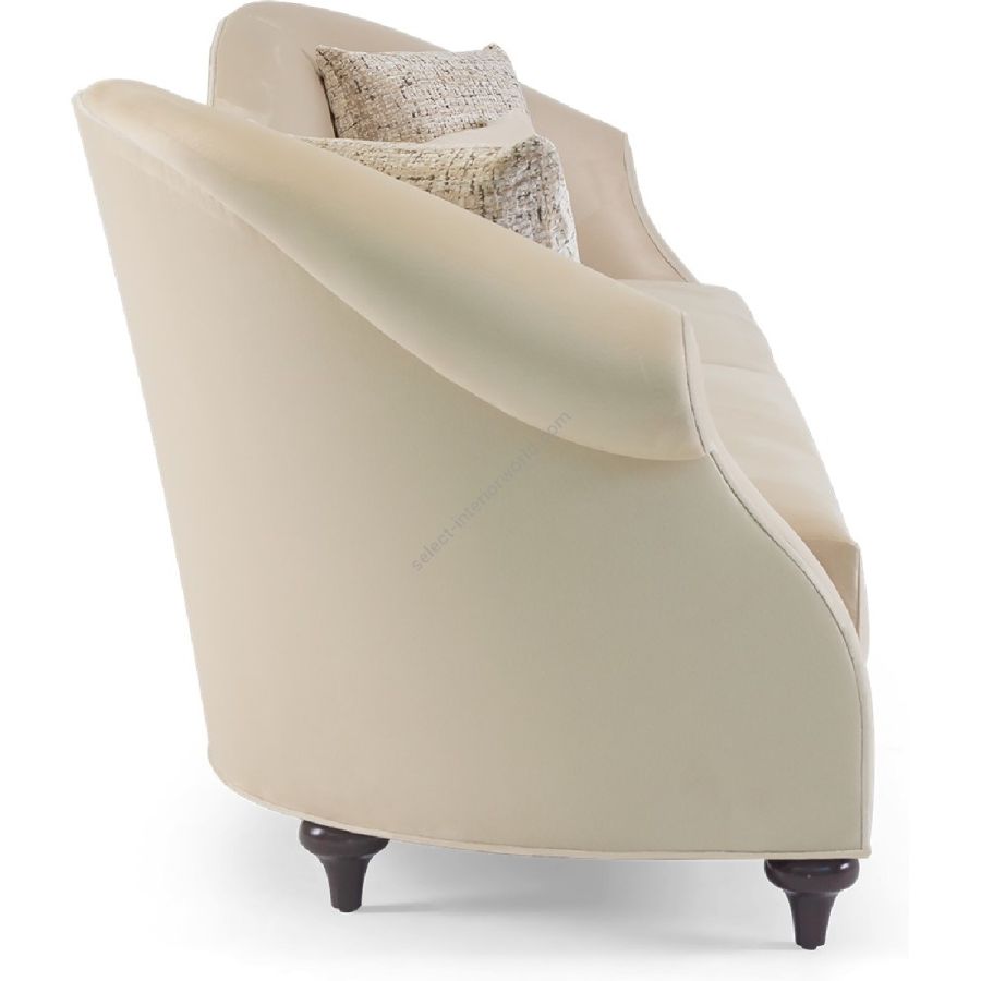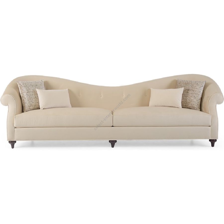 A gently curving symmetrical back flows seamlessly into the flourish armrests enclosing deep and sumptuous seats. The overall impact is completed with hand-carved mahogany legs.