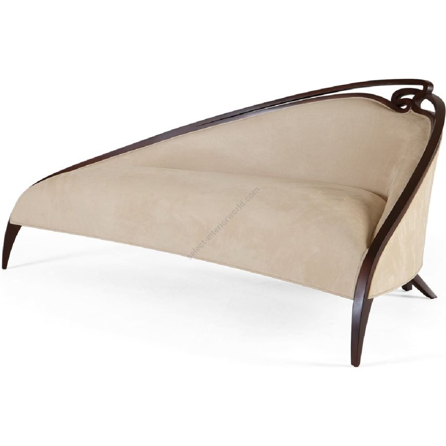 This curvaceous loveseat with its asymmetric right slant is topped by a intricate swirl of exquisite carving and the signature Chris-cross legs. Also available in a left-hand version (60-0461)