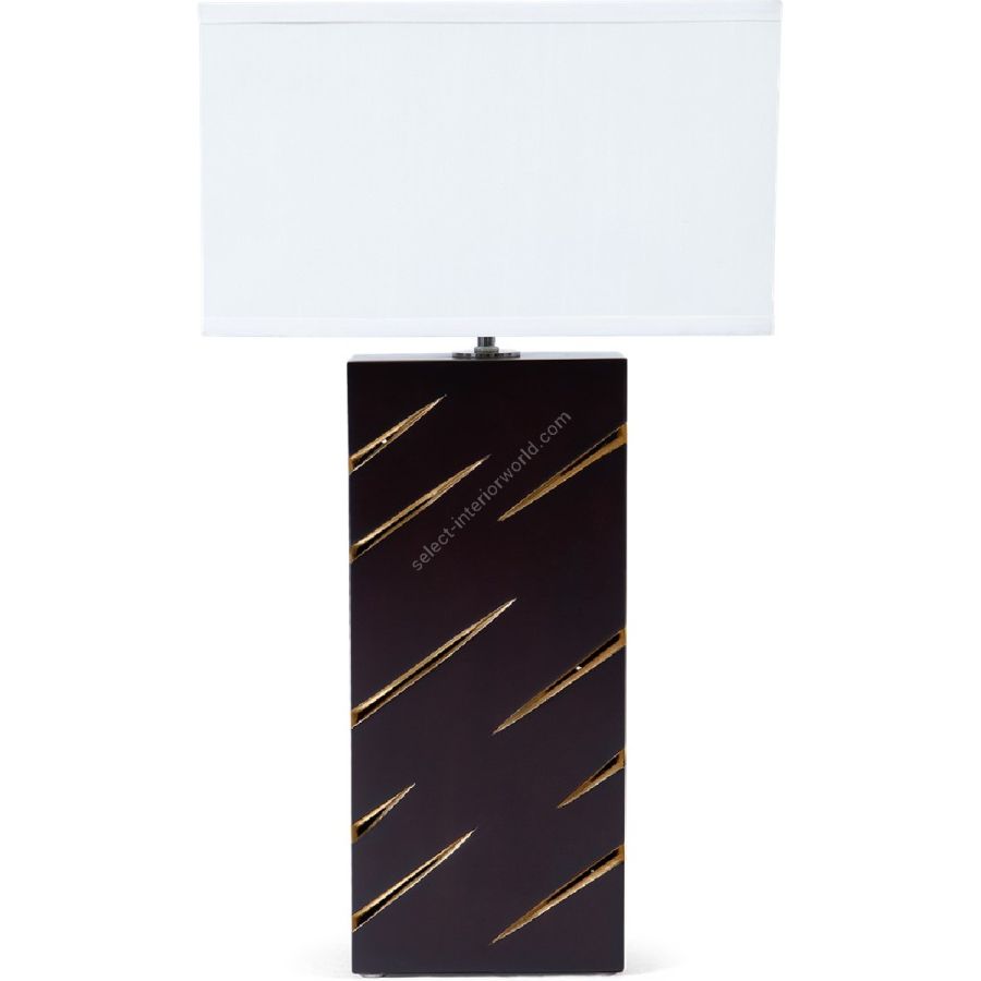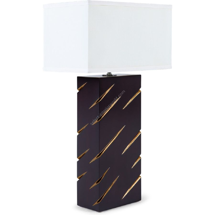 This striking square solid wood table lamp is expertly hand carved with pod incisions to create a bold contemporary look.