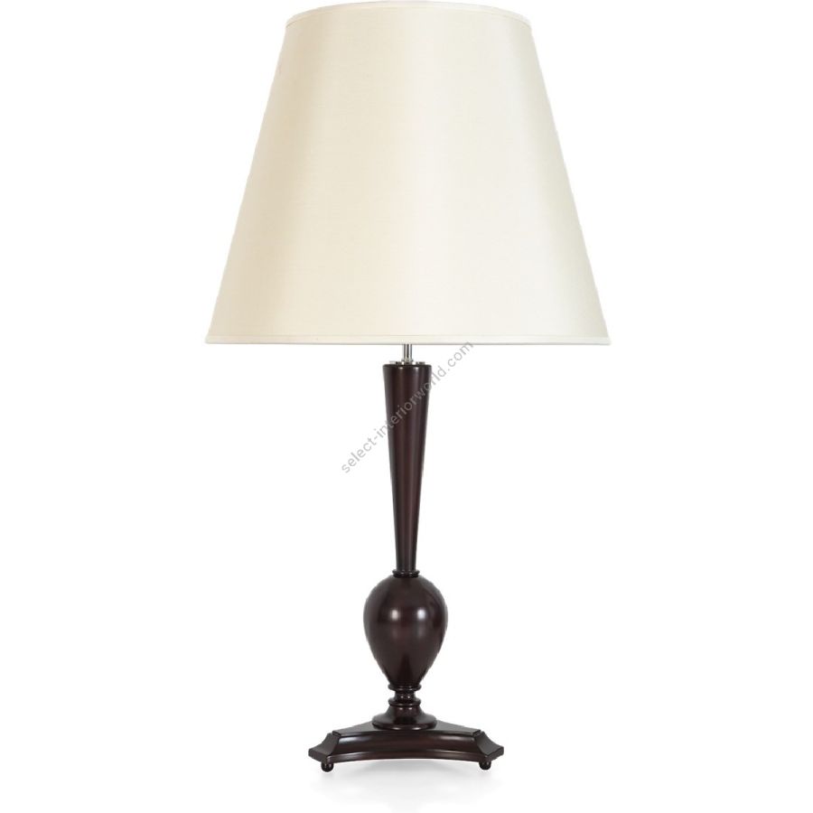 Certified Mahogany wood. Certified bleached Mahogany wood. Hand-carved by a dedicated team of the Master Carvers. Silk lampshade with lining. Selection of remarkable finishes are available.