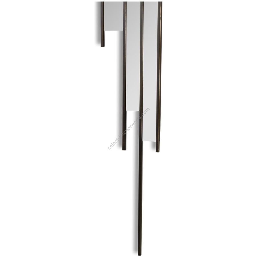 An awe-inspiring duo of tapered metal wall sconces featuring linear bronzage profiles inserted with beveled mirrors.