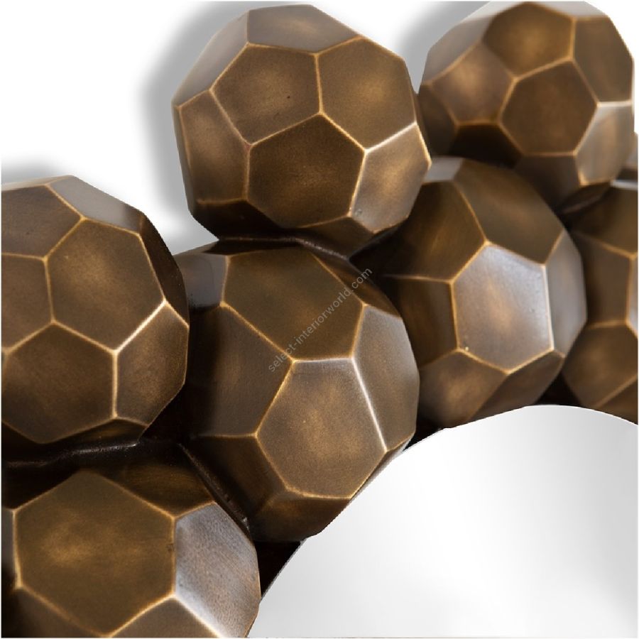 A double ring of polyhedron beads forms the frame of this circular mirror, creating a delightful flower form reflecting the light at all angles from the facets of each bead. Exquisite craftsmanship meets extraordinary design!