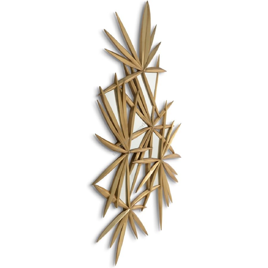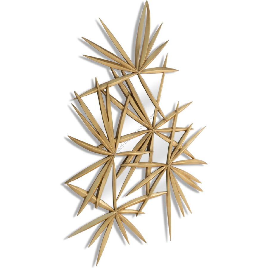 A cluster of starburst forms in exquisitely hand carved wood are scattered with mirror panes, to create a spectacular piece bridging wall art and a practical mirror frame.