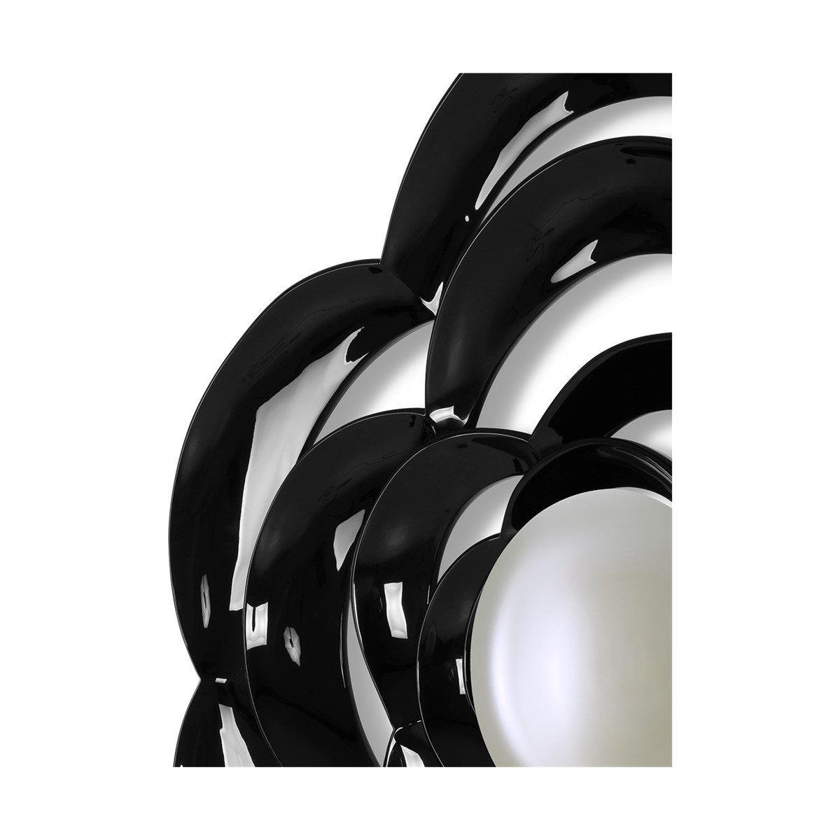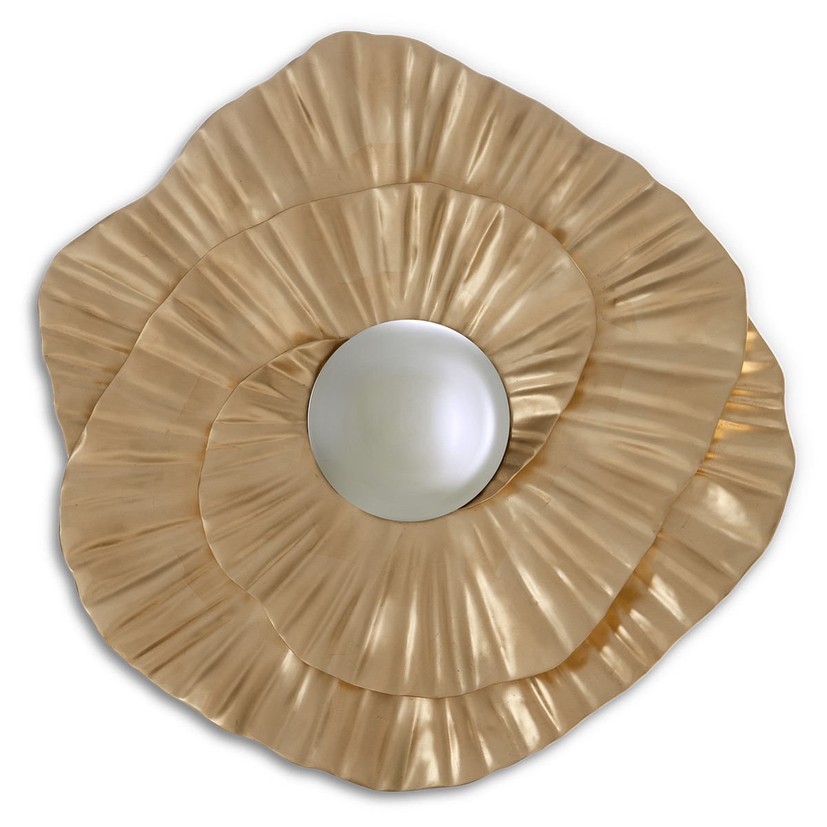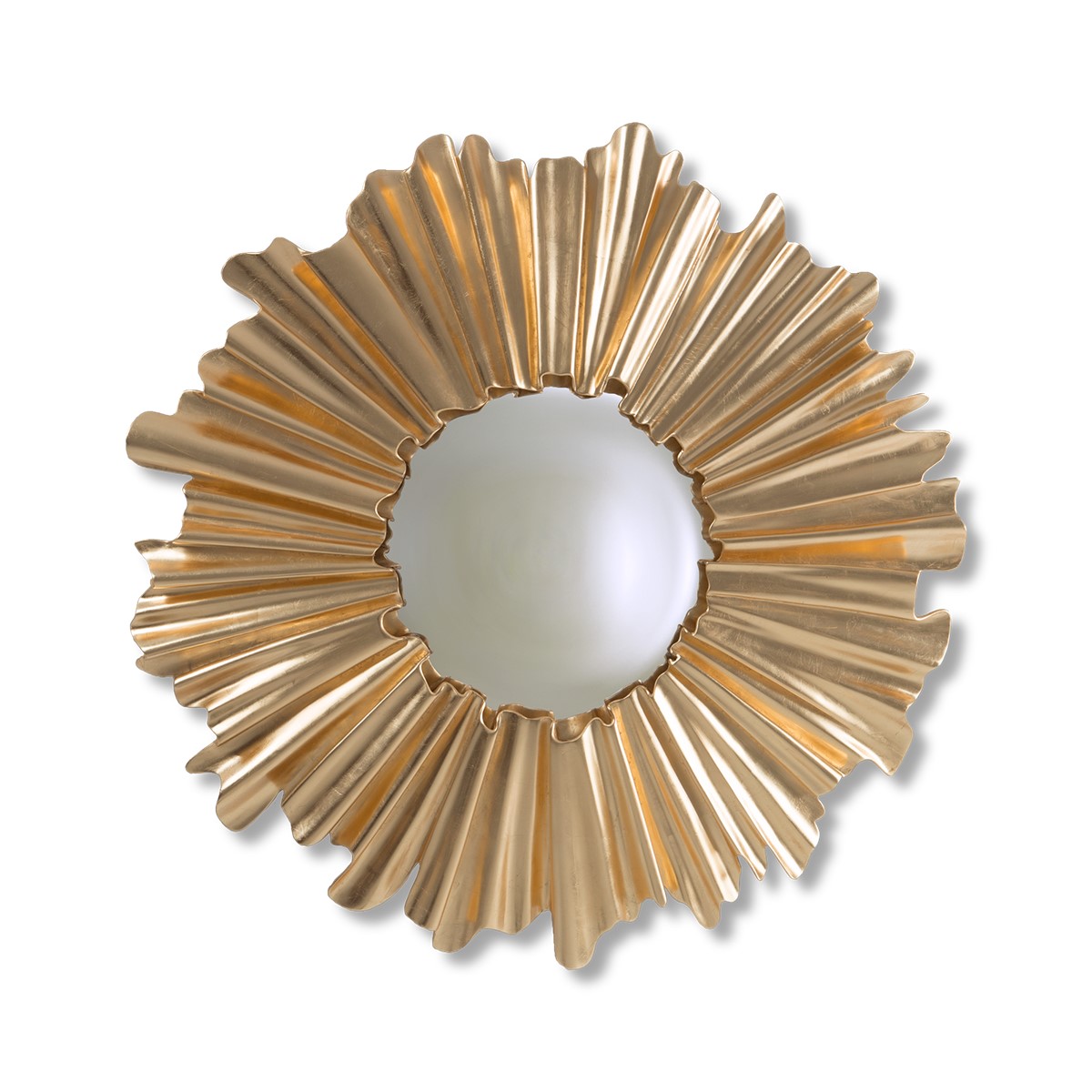 Inspired by the camellia flower, this fabulous hand-carved petal mirror frame is centred with the focus point of a decorative convex pane.