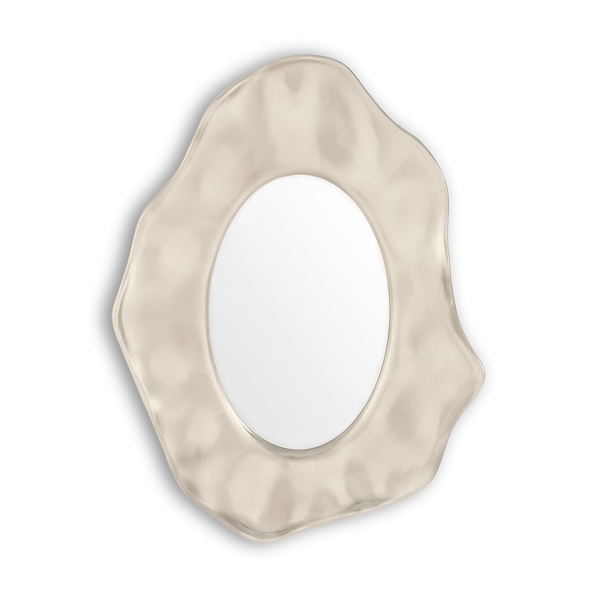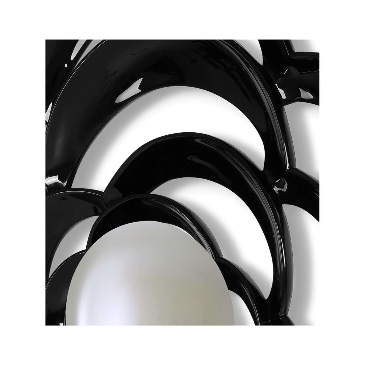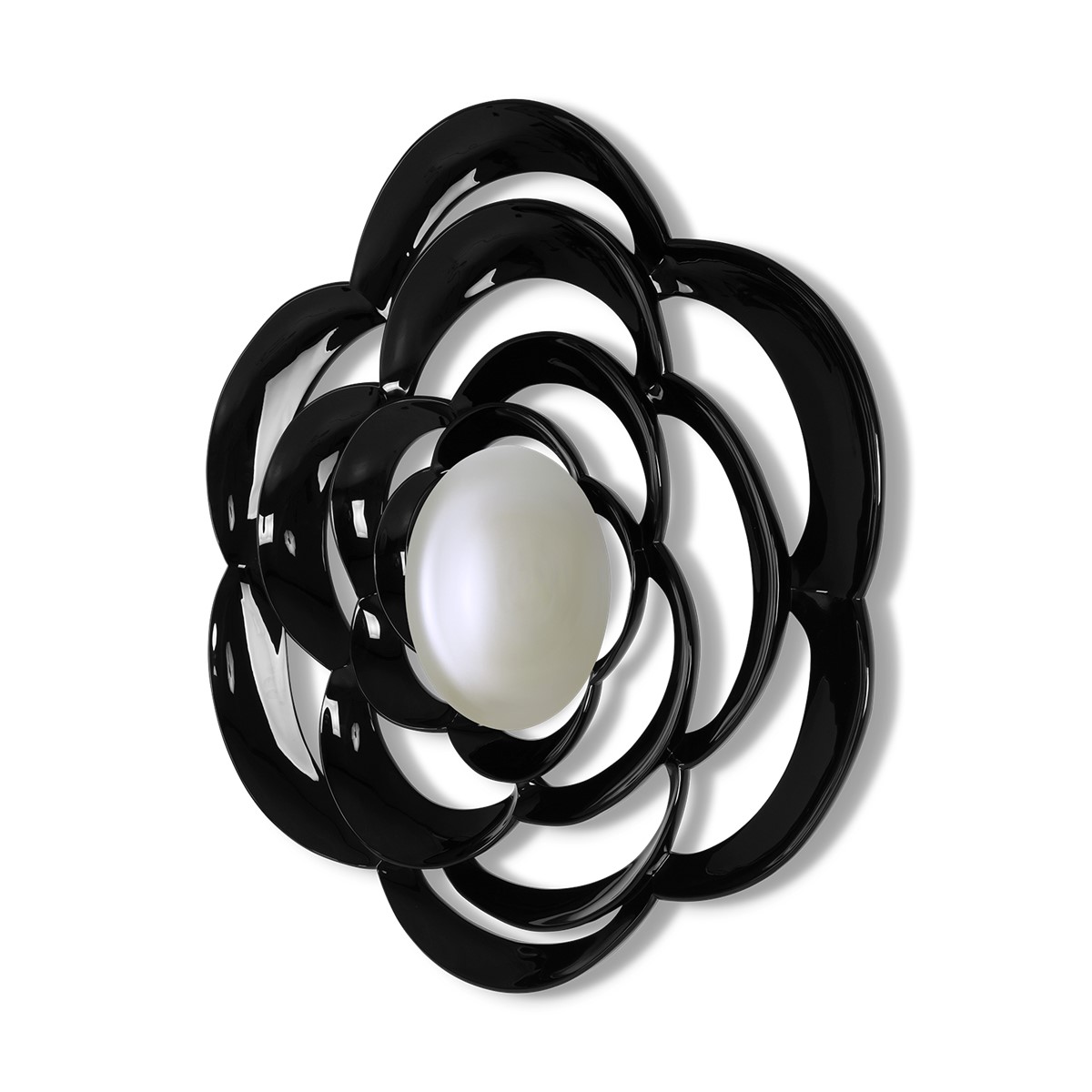 Inspired by the camellia flower, this fabulous hand-carved petal mirror frame is centred with the focus point of a decorative convex pane.