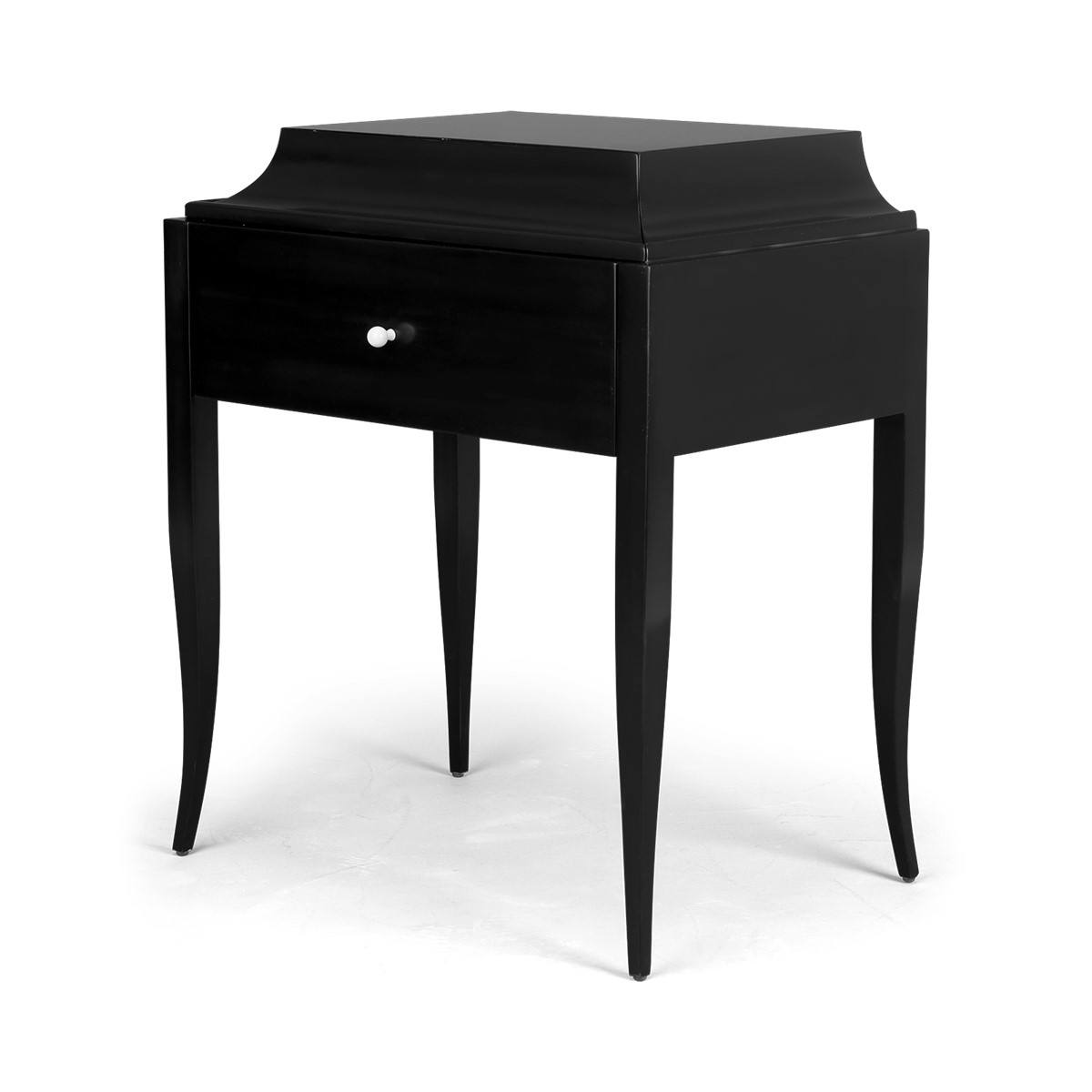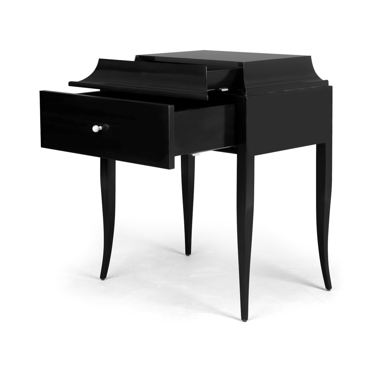 Delicate details are never more apparent than on this lovely sidetable with graceful tapered legs. The softly arched silhouette on the top drawer conceals a ""pull out"" drawer lined in Ultrasuede.