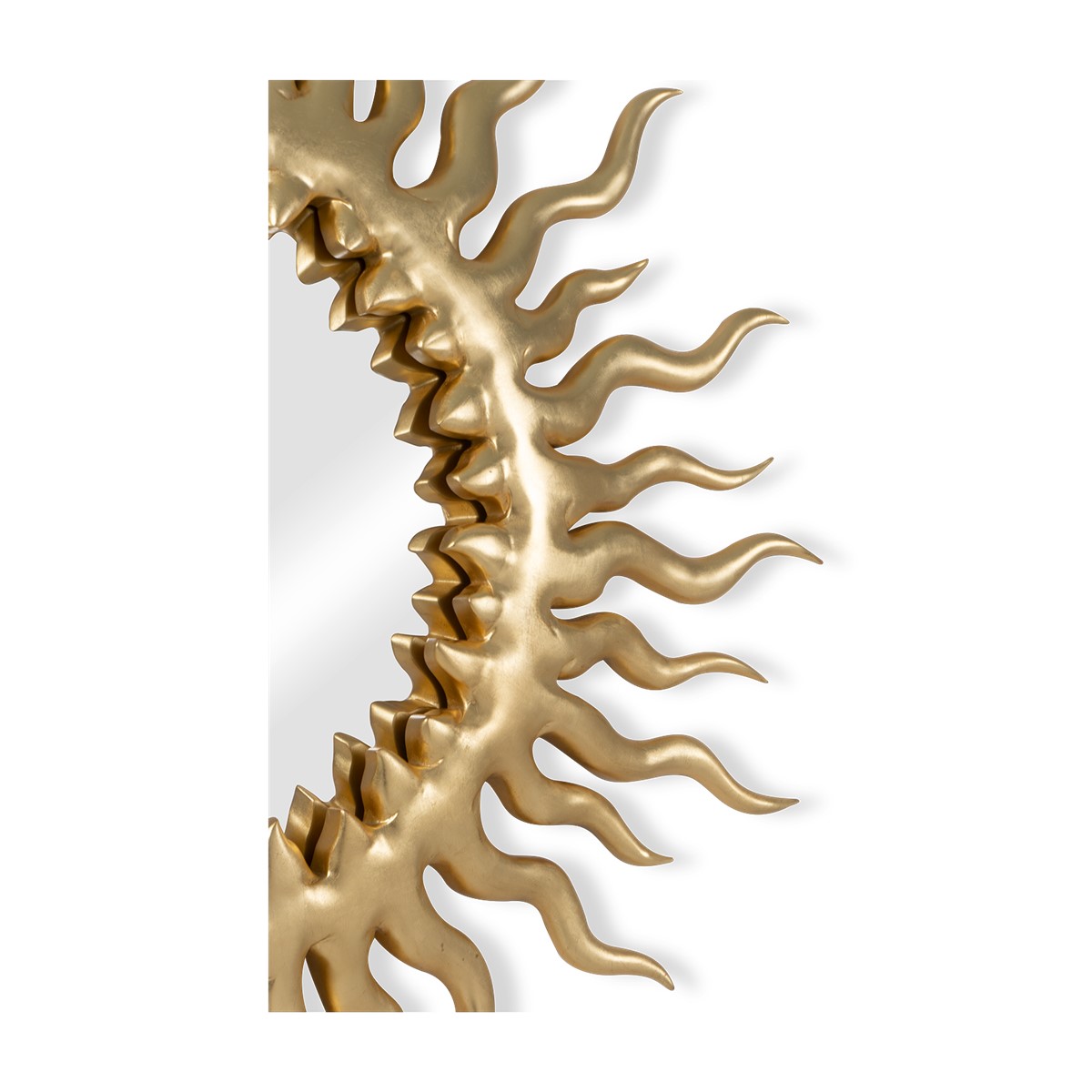This spectacular sun-inspired hand-carved flame mirror sets any classic or contemporary interior ambience alight.
