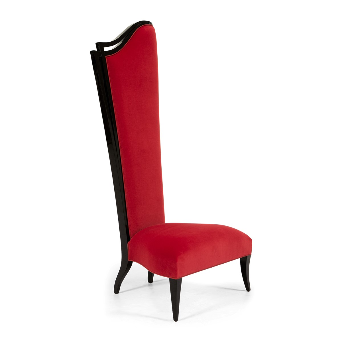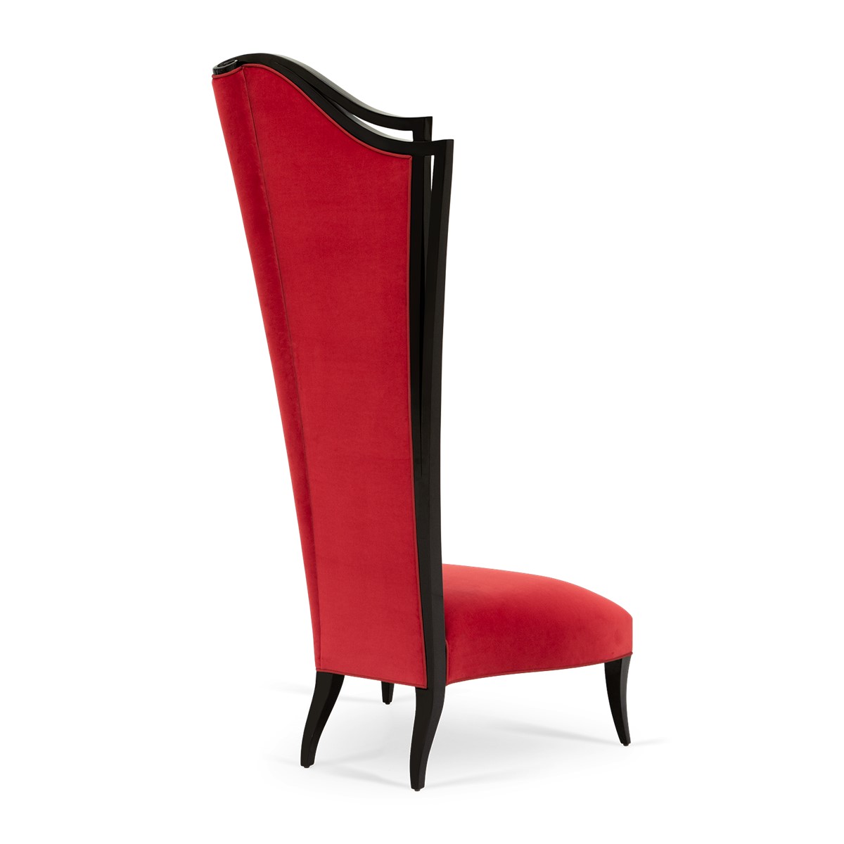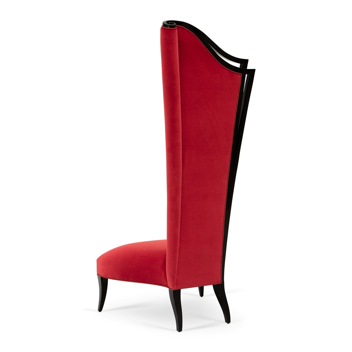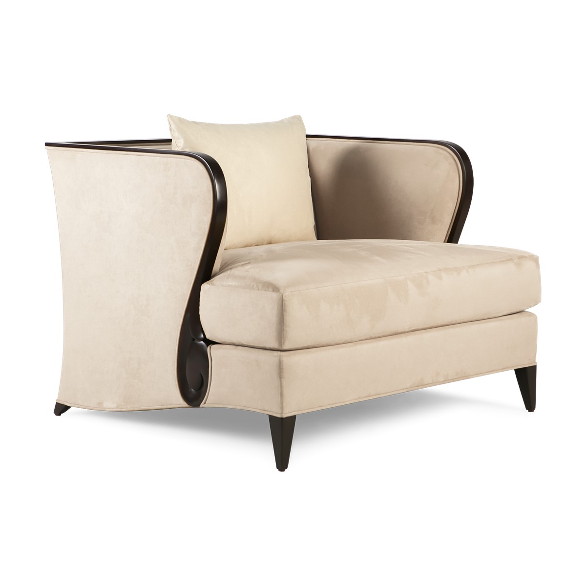 Add a touch of grandeur to a room with this left or right asymmetrical accent chair, with a double curved edge hand-carved from solid mahogany. Also available in reverse (60-0229).