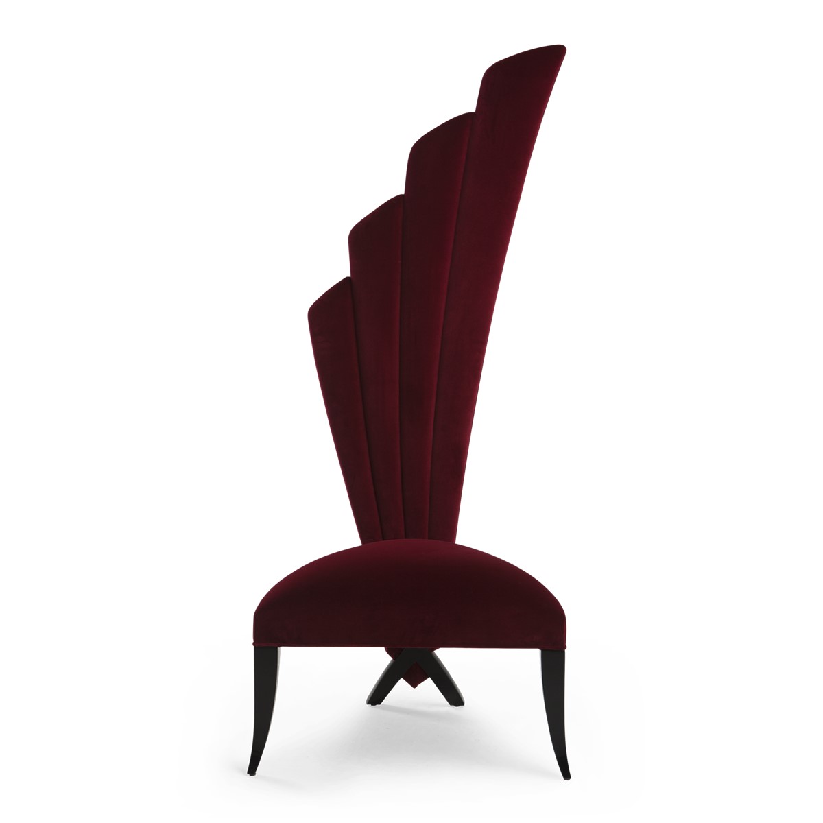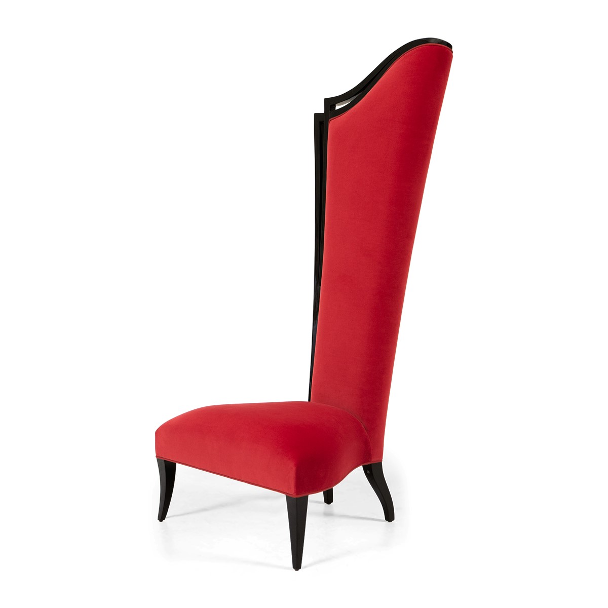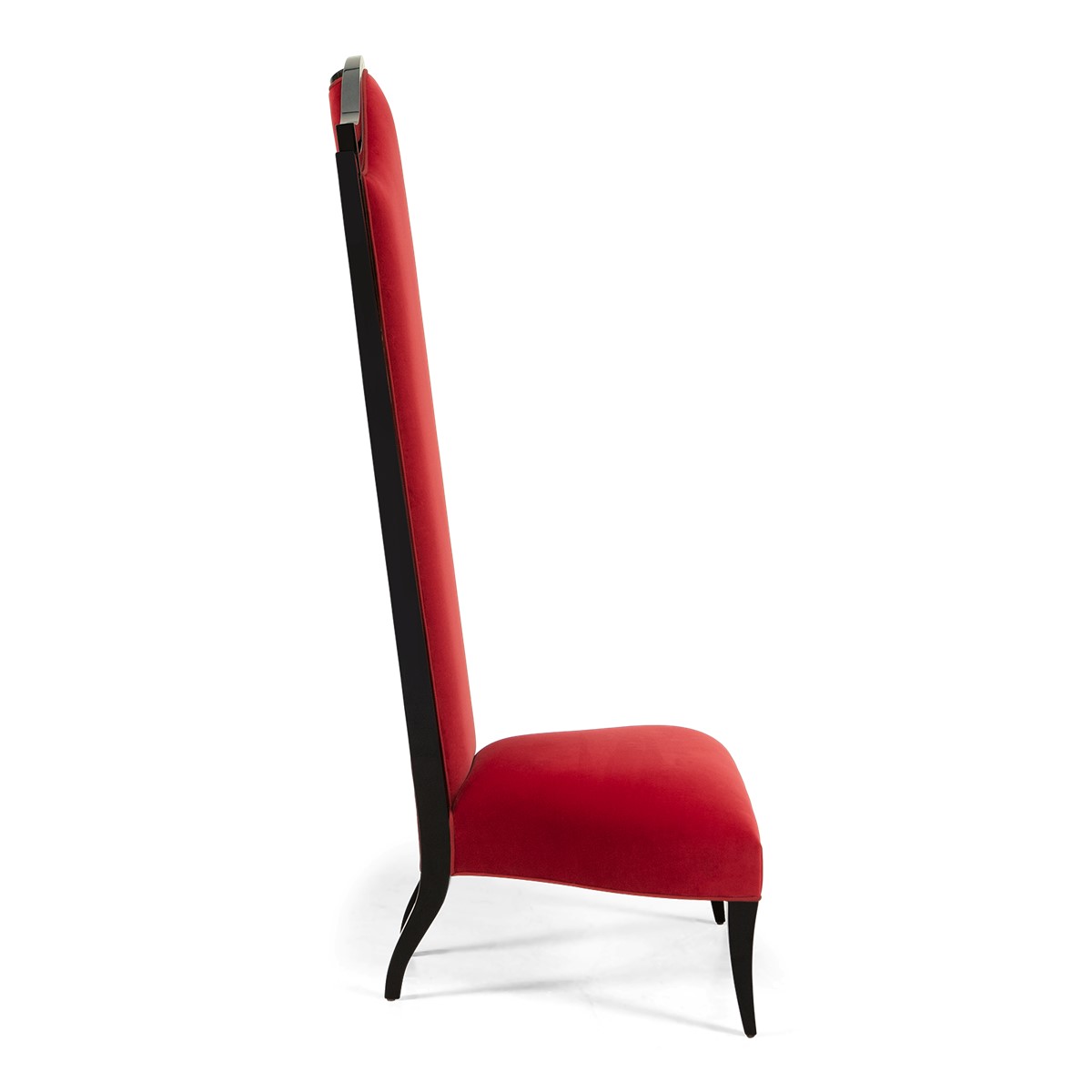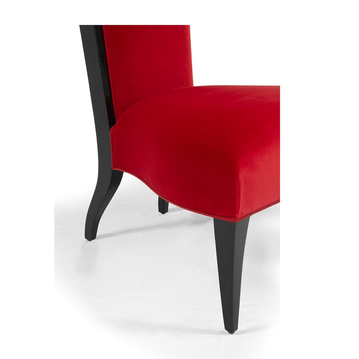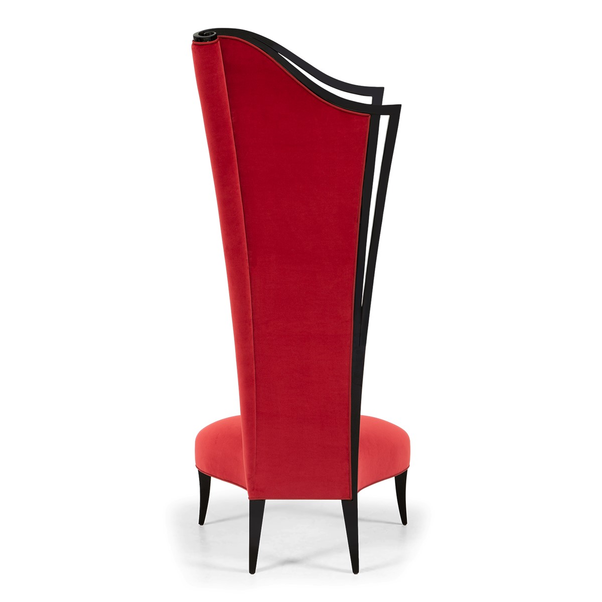 Add a touch of grandeur to a room with this left or right asymmetrical accent chair, with a double curved edge hand-carved from solid mahogany. Also available in reverse (60-0229).
