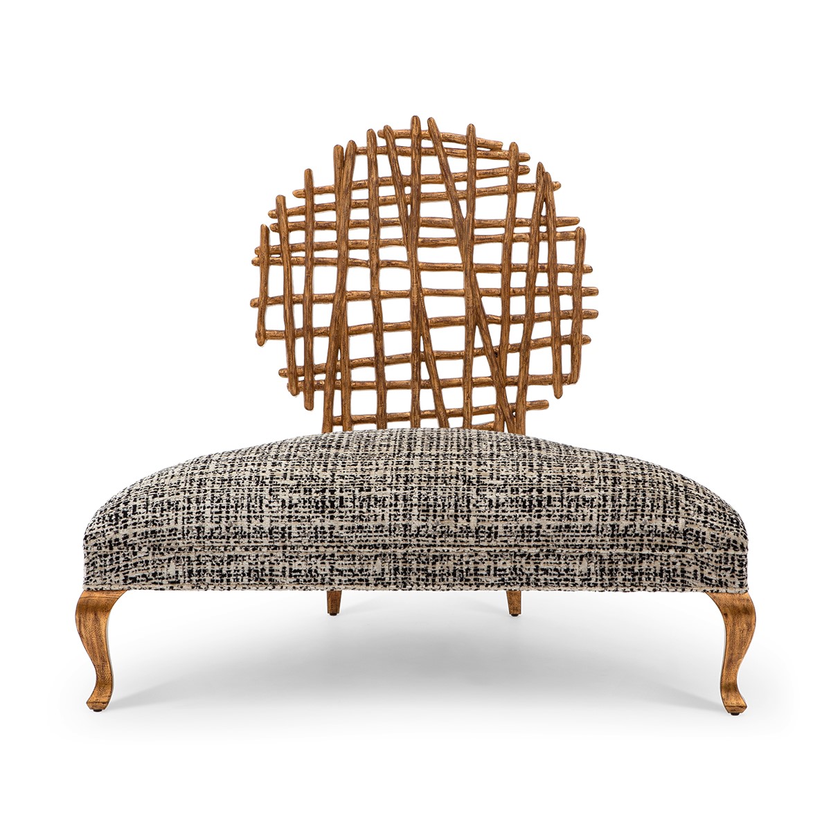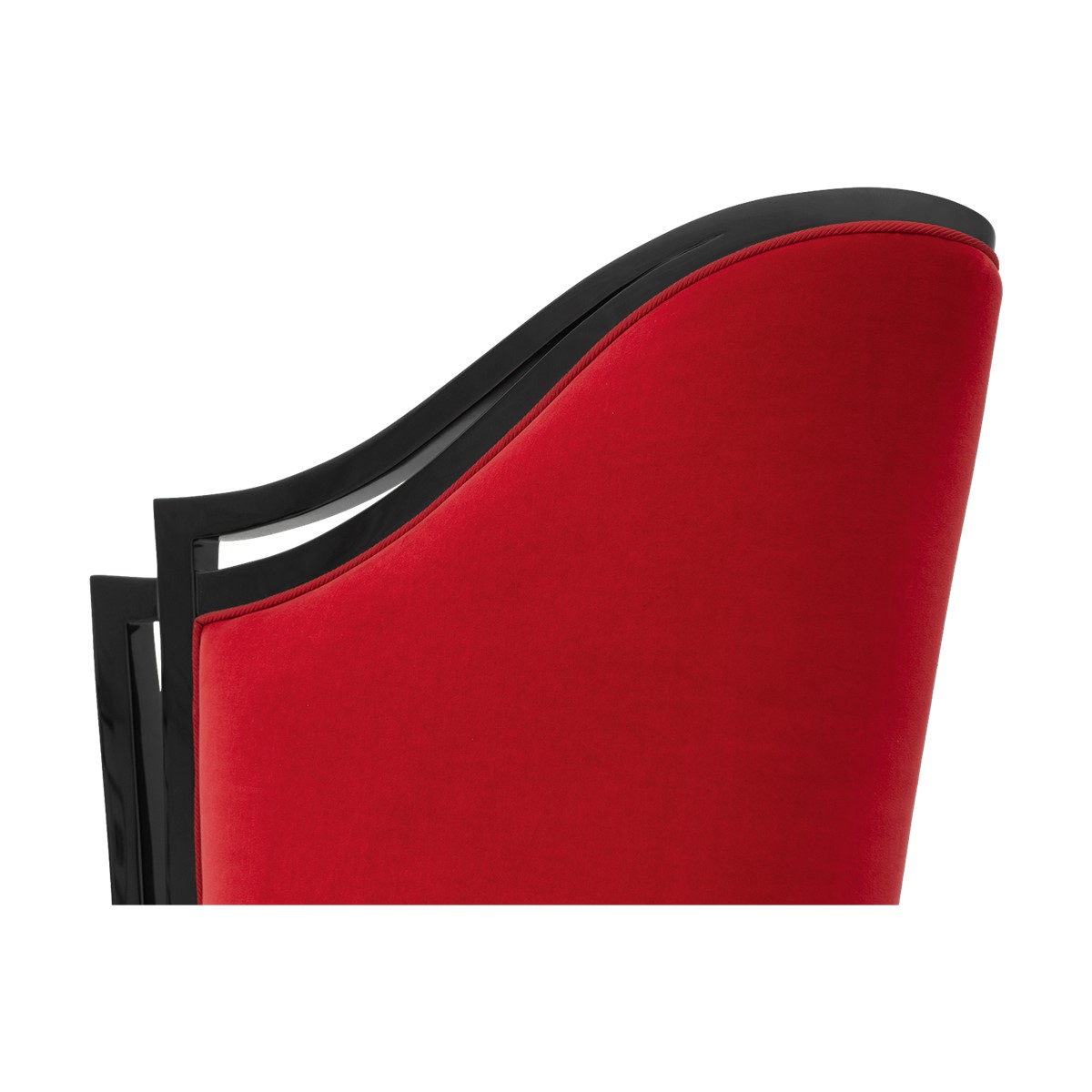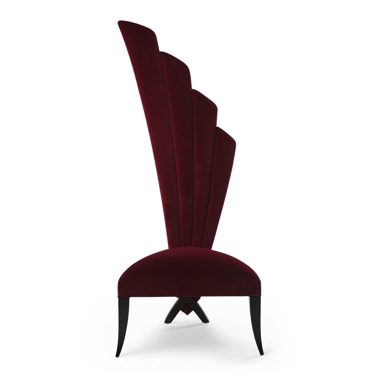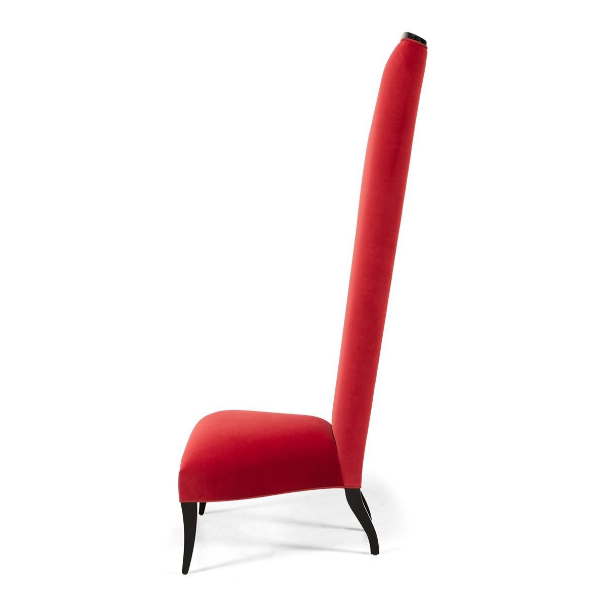 Add a touch of grandeur to a room with this left or right asymmetrical accent chair, with a double curved edge hand-carved from solid mahogany. Also available in reverse (60-0229).