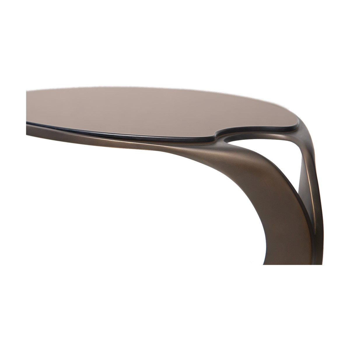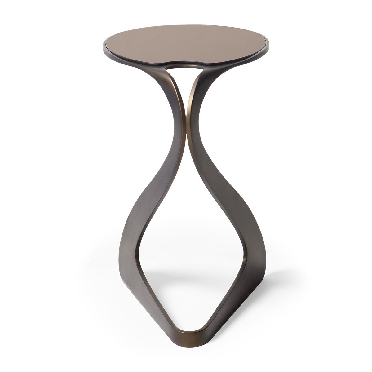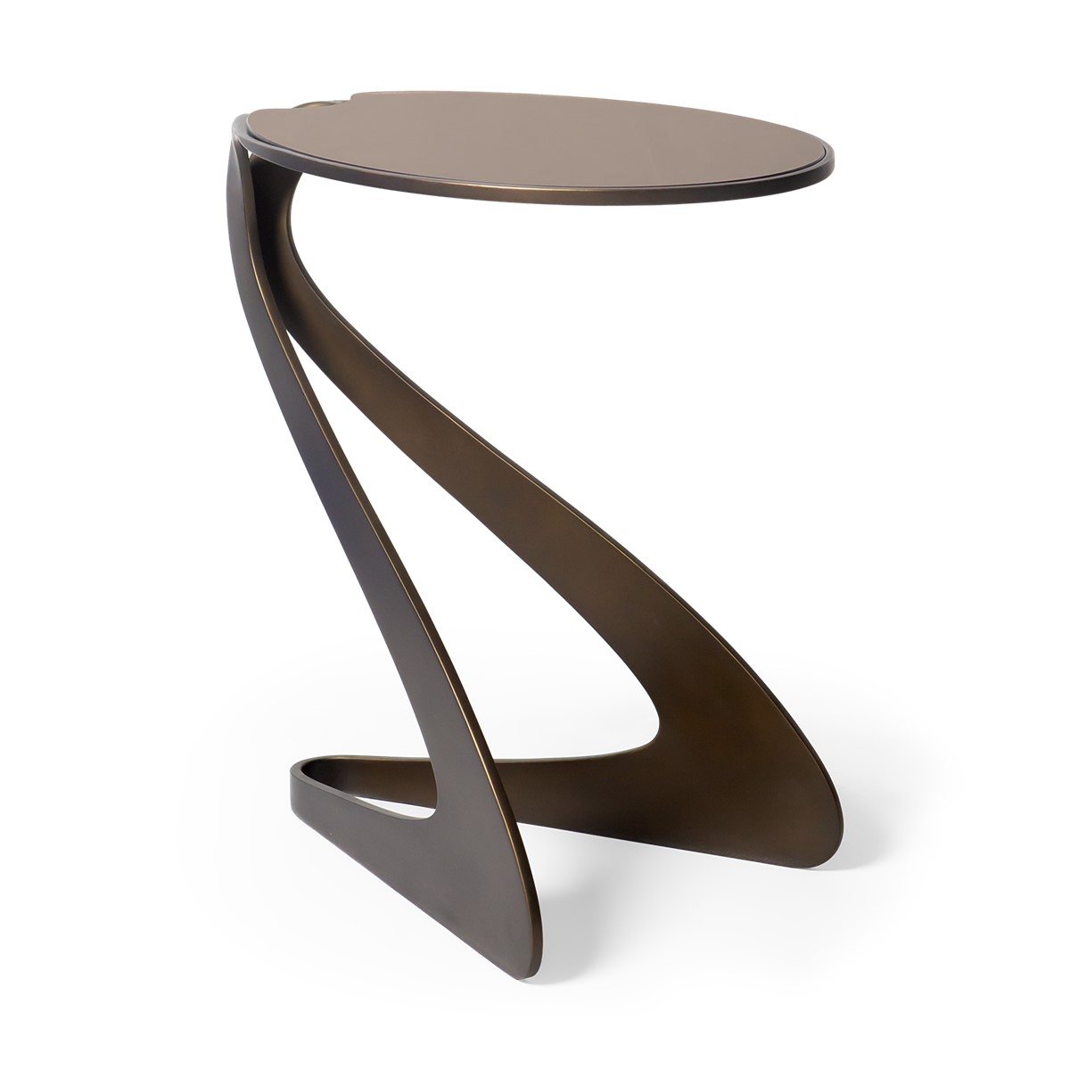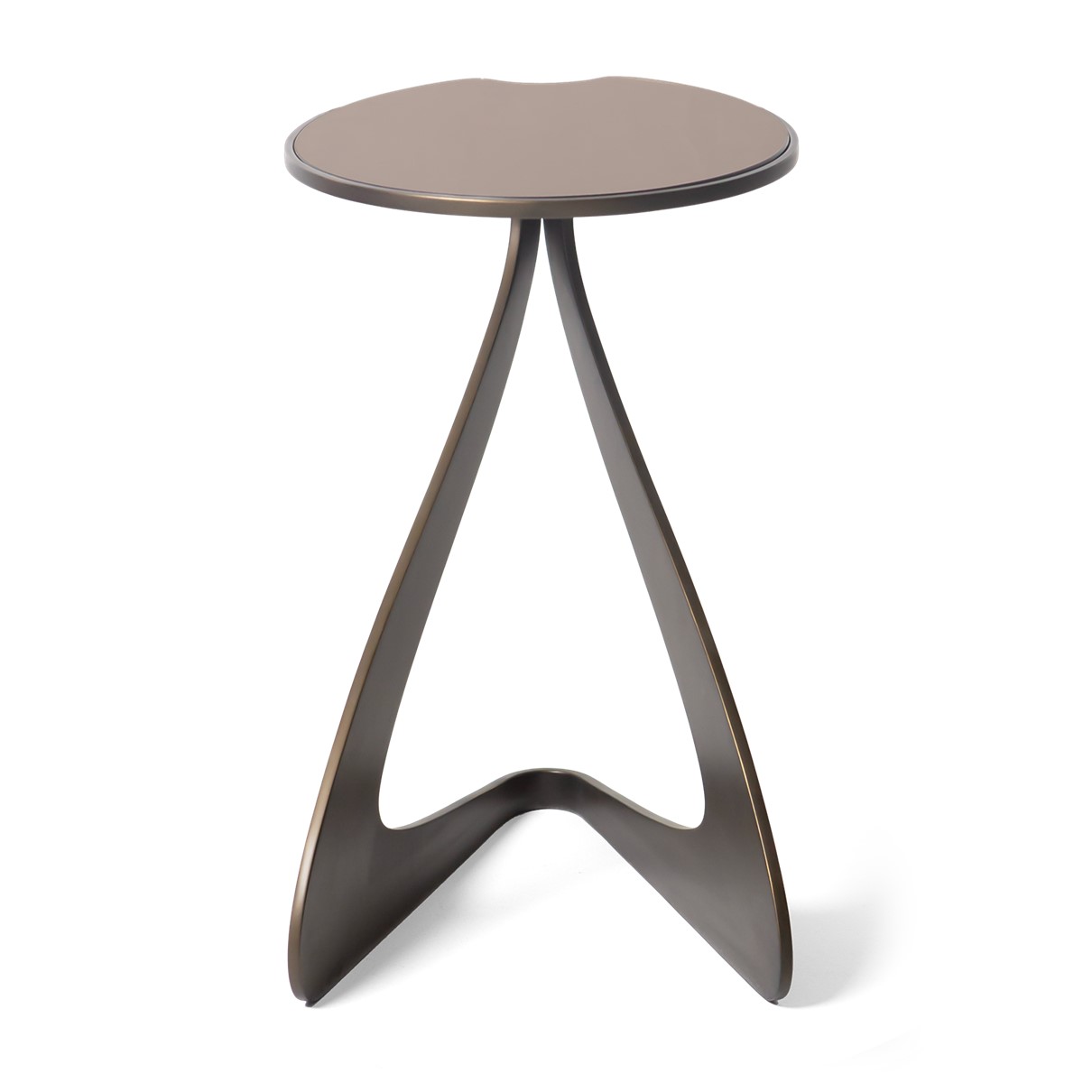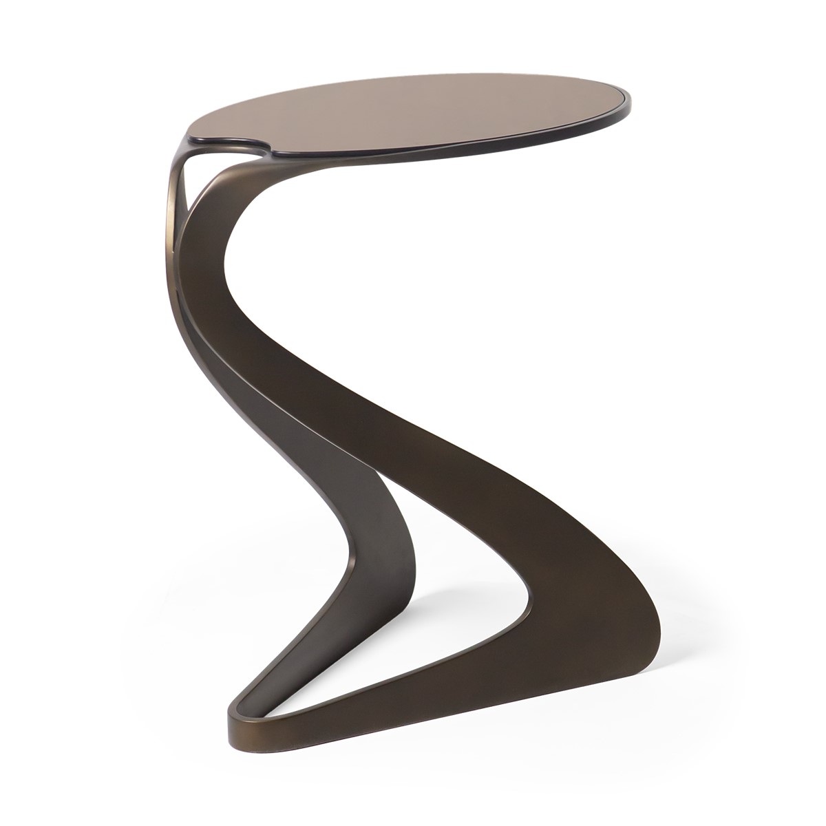 Reminiscent of a handwritten note, the Do-Re-Mi side table features a forged iron base that supports a glass top in brown or grey—creating a dynamic interplay of strength and grace. Compact yet expressive, this side table makes a confident statement in any space.