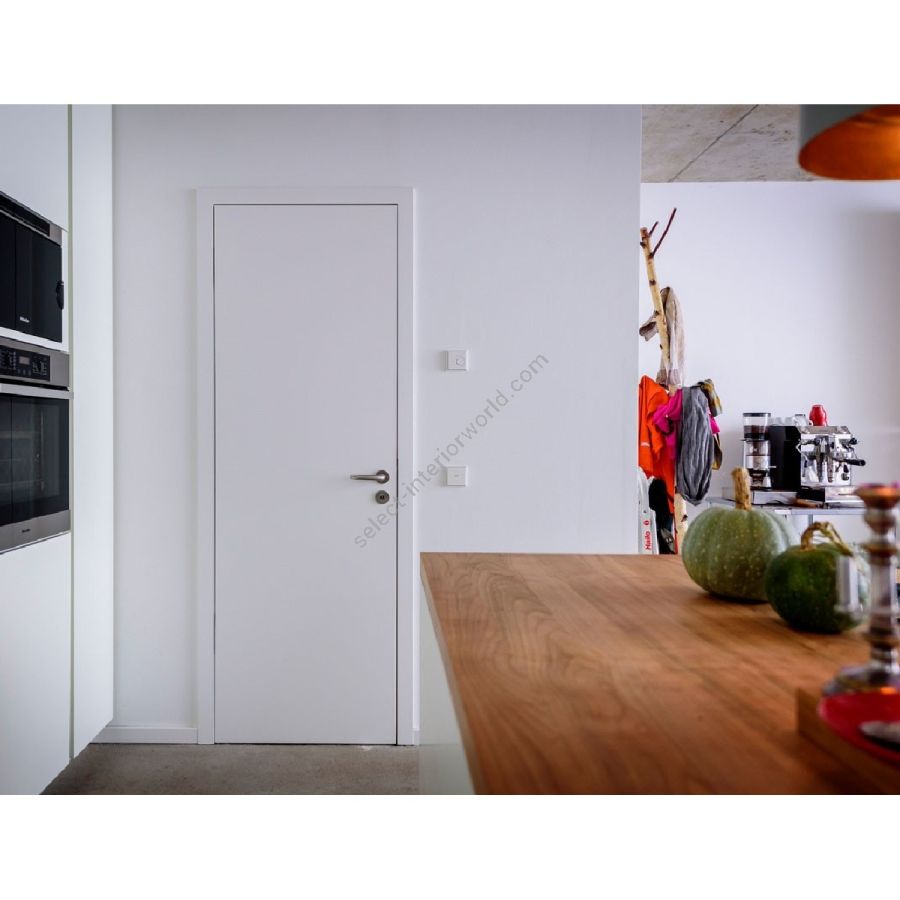 For a timeless design of your flush door, we recommend the use of concealed hinges and narrow rosettes or rosettes recessed into the door leaf.