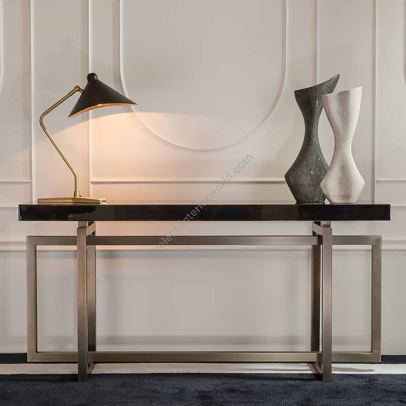 Charlotte is a refined double side console. Thought to be the perfect solution in the middle of the room or just as an elegant element that divides two different areas. The special feature of this console is the metallic and sculptural top that also presents crossing elements. They immediately turn the design of Charlotte into something unforgettable and recognisable.
