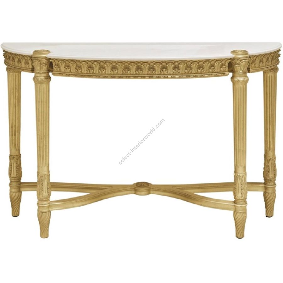 All the splendour of the French style in the Boulevard collection, featuring the presence of hand-made carvings, embellished with gold leaf finishing. The console of the line is embellished by a decorative cross and it presents a top in white Namibia Rhino marble. A graceful and precious piece of furniture, the expression of a refined and decorative luxury.