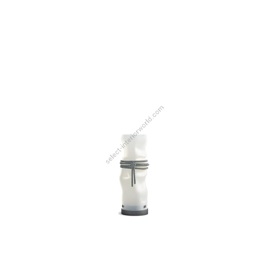 The Baggy table lamp (small and medium) has a double-satin polycarbonate diffuser with the irregular appearance of a crumpled paper tube, while the base is in grey finish. The distinctive soft textile cord in white/grey – a detail that expresses the brand’s archi-decorative stylistic code – becomes a joining element for the table and floor variants adn supports the lamp in the suspended version. The product is available in two heights: 30 and 60 cm.