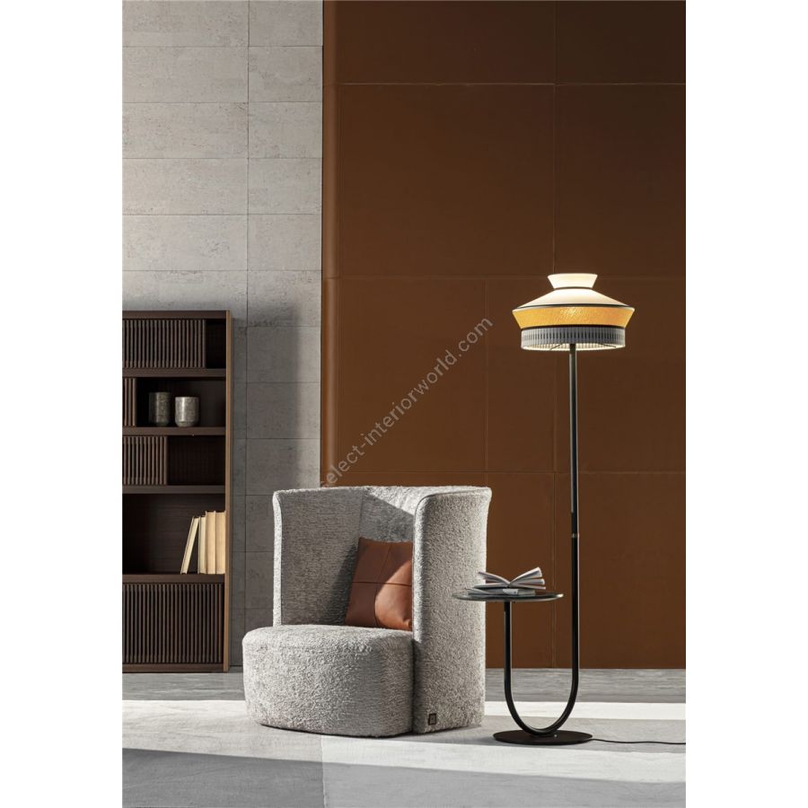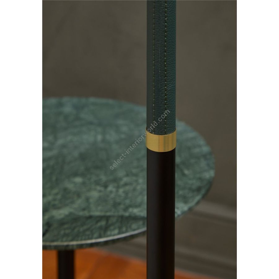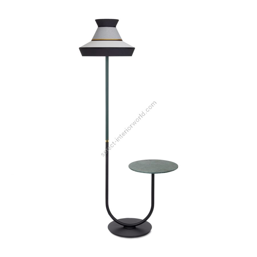 Contardi and Servomuto have decided to add an indoor floor version to the collection, with the option of an attached table. Every lampshade is made of premium waterproof and fireproof fabrics in hypoallergenic and non-toxic materials, while the stem is characterised by black lacquering of the lower part and the base. The upper part is covered in supple leather, and all the parts are unified with brass detailing. The functional yet refined coffee table is made of green Guatemala marble, which harmonises well with the vibrant colours of the lampshades.