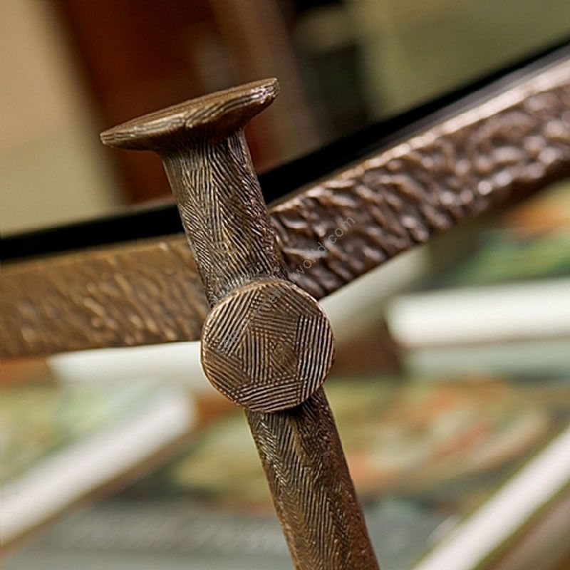Today, Tom’s work appears in over 20 galleries and showrooms. Individual collectors include Mr. and Mrs. Tom Hanks, The Pritzker’s, George Brett and the late Frank Sinatra. Public installation sites include the United Nations, The Kauffman Foundation, the Firefighter’s Memorial, the Children’s Fountain, University of Oregon and Florida State University. In addition to important public and private collections, his work has found its way onto the sets of some major motion pictures, among them Ransom, True Lies, A Perfect Murder and Changing Lanes. Two Tier Coffee Table. Bronze, standard patinas. Artist: Tom Corbin. Price does not include the glass tabletop. Tom Corbin’s introduction and subsequent career in sculpture has been based more on serendipity than calculation. A two dimensional artist in college, Tom’s first brush with the third dimension came in a chance meeting with a bronze sculptor in 1982. Classes with this sculptor led to a deepened interest in bronze casting and thoughts of a career in art. In 1986, Tom left the secure confines of his advertising agency job for the unpredictability of life as a full time sculptor. Tom landed his first major public commission in 1988. Additional commissions followed, along with the financial freedom for Tom to develop his own “speculative” sculpture. During this period, Tom was also experimenting with furniture design, an area that would soon play a major role in the growth of his studio operation. Artist Statement I was initially attracted to the physicality and the dynamic nature of sculpture and was intrigued by the profound impact sculpture can have on an environment. As for bronze casting, the medium dictates a certain sense of tradition and order, which I continue to embrace. The challenge for me is to take the medium and create a tradition of something new. My work over the last two decades has experienced quite an evolution, that from a representational artist to an instinctive artist. Where my early sculptures were modeled in a traditional manner, my current work is more abstract and serves as a metaphor for the human condition in a solitary, introspective form. As for my furniture designs, I would agree with Warhol when he said, “The line between art and design is often blurred. I float between sculpture and functional pieces incorporating similar images into each.” Functional art, as a result, seems to be a more appropriate title. My thought process in producing a new work is essentially a planned accident. I begin with a general concept in mind, but whether I end up with that concept is not important. A work in process has a mind of its own and can take you down a totally unexpected but more satisfying path. Collectors: Personal Collections Mr. Alec Baldwin, New York, NY Mr. & Mrs. George Brett, Kansas City, MO Ms. Carol Burnett, Los Angeles, CA Ms. Lily Chao, Hong Kong, China Ms. Ellen DeGeneres, Los Angeles, CA Mr. Fred Dryer, Los Angeles, CA Prince Fizel, Royal Embassy of Saudi Arabia Mr. & Mrs. Tom Hanks, New York, NY Prince & Princess of Hanover, London, England Mr. Ron Howard, Los Angeles, CA Mr. Lamar Hunt, Dallas, TX Mr. & Mrs. Emeril Lagasse, New Orleans, LA and New York, NY Mr. Carl Lewis, Los Angeles, CA Mr. & Mrs. Wayne Newton, Las Vegas, NV Mr. Jack Nicholson, Los Angeles, CA Mr. Daniel Powter, Los Angeles, CA Mr. & Mrs. Jay Pritzker, Chicago, IL Mr. & Mrs. Ray Romano Malibu, CA Mr. & Mrs. Arnold Schwarzenegger, Malibu, CA Mr. & Mrs. Frank Sinatra, Los Angeles, CA Mr. & Mrs. Peter Sloan, Kansas City, MO Ms. Danielle Steel, San Francisco, CA Mr. Lynn Swan, Pittsburgh, PA among others. Public Collections and Installations: Bergstrom Foundation, Neenah, WI Buck O’Neil Foundation, Kansas City, MO Children’s Fountain, Kansas City, MO Cleveland Chiropractic College, Kansas City, MO Firefighter’s Memorial, Kansas City, MO Florida State University, Tallahassee, FL Kauffman Memorial Gardens, Kansas City, MO Kauffman Stadium, Kansas City, MO Kemper Museum of Contemporary Art, Kansas City, MO Korea and Vietnam Memorial, Wyandotte Co., KS The Lyric Opera, Kansas City, MO Middletown Regional Hospital, Middletown, OH Negro Leagues Baseball Museum, Kansas City, MO Pinellas Sports Authority, St. Petersburg, FL Pittsburg State University, Pittsburg, KS Reverend John Williams Memorial, Kansas City, MO United Nations Peace Plaza, Independence, MO Schuster Performing Arts Center, Dayton, OH St. Mary’s College, Omaha, NE Vietnam Memorial, Richmond, MO United Nations, New York, NY University of Missouri, Kansas City, MO University of Oregon, Eugene, OR among others. Corporate Collections: American Century Investors, Kansas City, MO Bloomingdale’s, New York, NY Columbia Pictures, Los Angeles, CA Dayton Hudson, Minneapolis, MN Four Seasons Hotel, Hawaii Honeywell, Minneapolis, MN The Kauffman Foundation, Kansas City, MO Marshall Fields, Chicago, IL Merrill Companies, Overland Park, KS Nieman Marcus, Dallas, TX Novatel Hotels, Seoul, Korea Paramount Pictures, Los Angeles, CA Properties Group, Cary, NC Quaker Oats, Chicago, IL Royal Sporting House, Singapore Turtle Wax, Chicago, IL Warner Brothers Studio, London, England among others. TV, Radio and Film Appearances: Changing Lanes – Paramount Pictures Cruel Intentions – Sony Pictures Homes Across America – HGTV In Treatment – HBO It’s Complicated – Universal Pictures Law & Order: Criminal Intent – NBC Marketplace – National Public Radio Obsessed – Screen Gems A Perfect Murder – Warner Brothers Pictures Ransom – Touchstone Pictures Top Design – Bravo True Lies – 20th Century Fox Pictures among others.