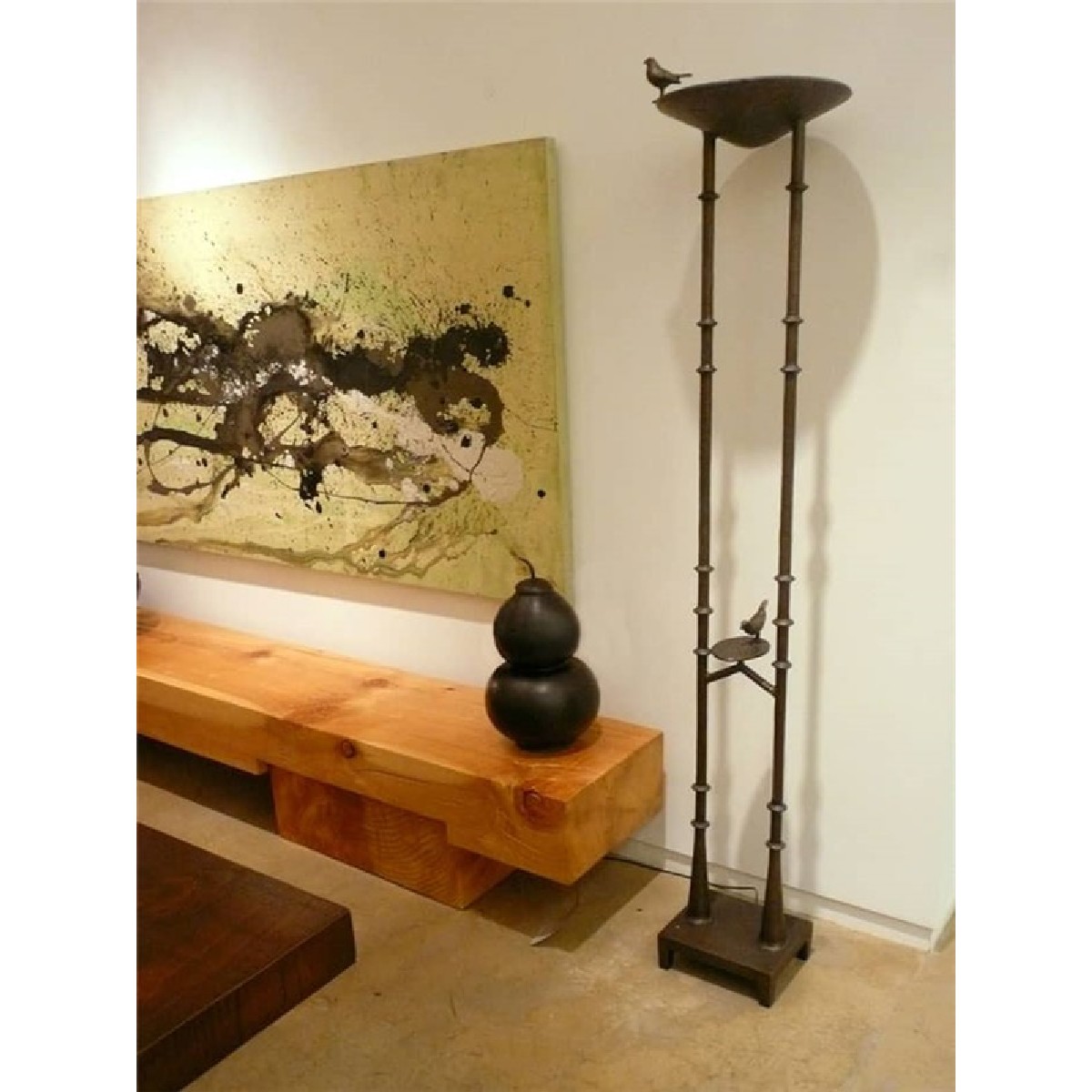 Two Pole Torchiere with two birds