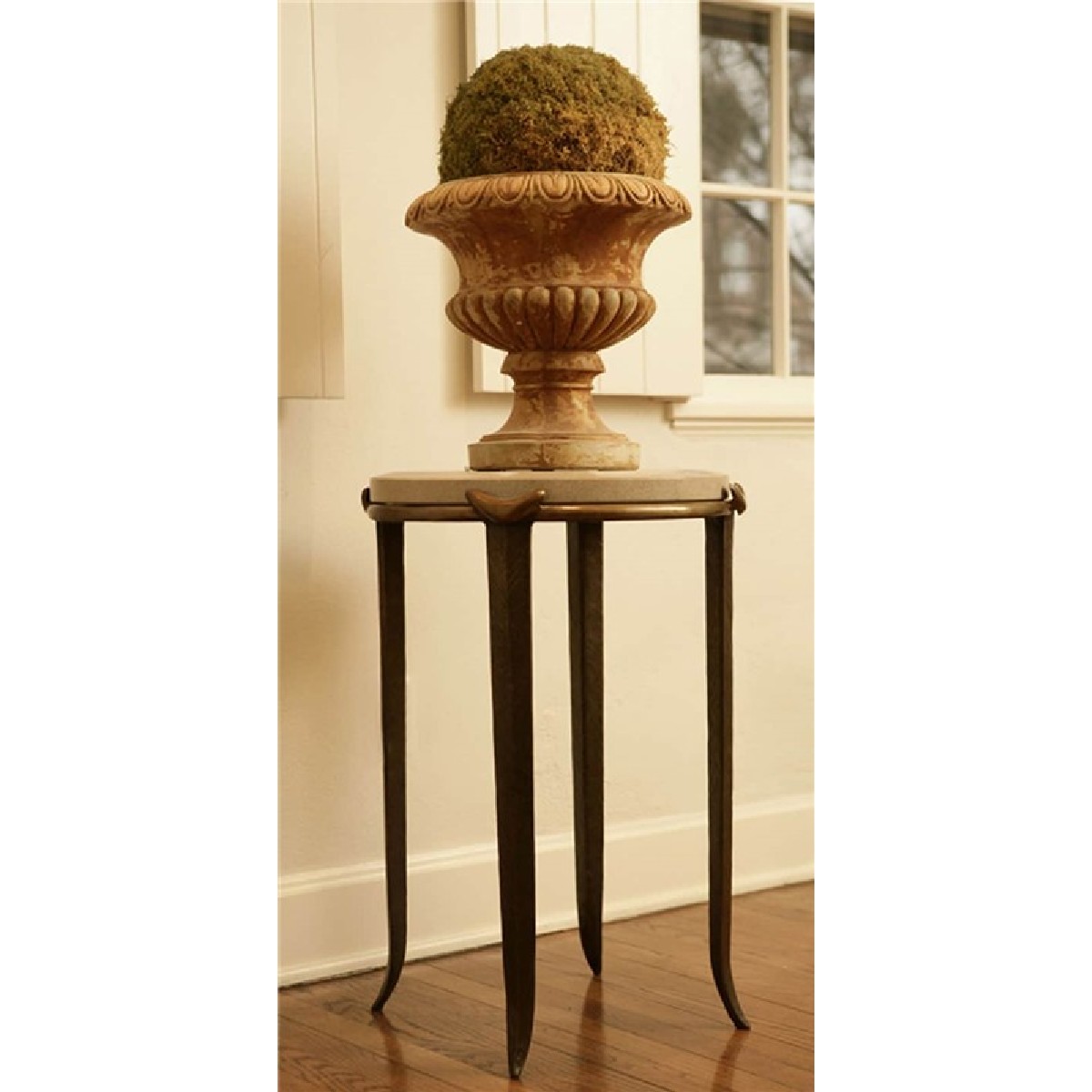 Chevron Side Table (left): 27”OAH, 18” diameter