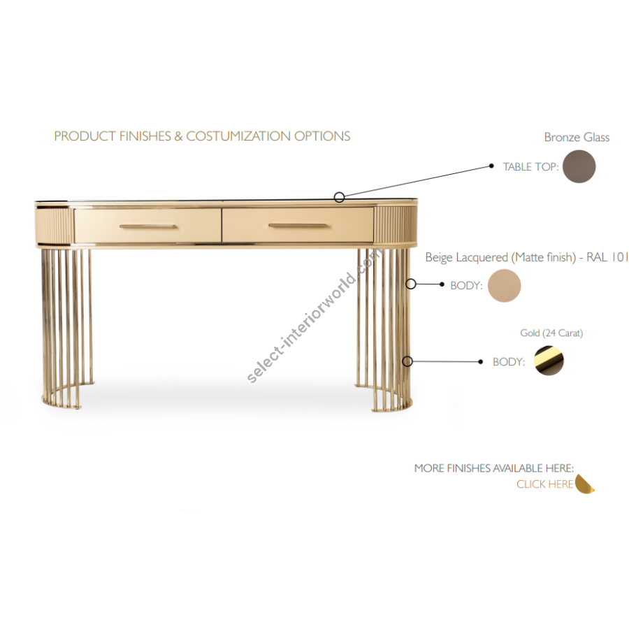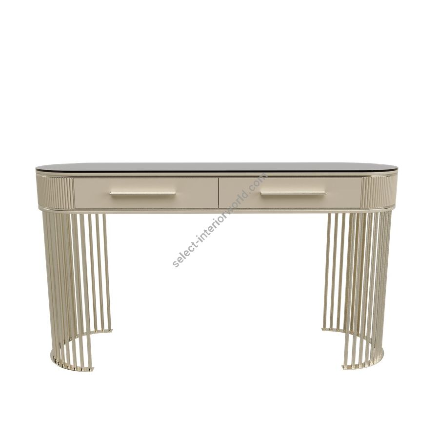 A sophisticated colour combination is smooth yet delicate – it manifests an effortless elegance that is alluring to decorate with and complete a total home look with balance and harmony. This modern design integrates sleek gold-plated brass lines that are intertwined and create a subtle frame for the upper part of the console table.