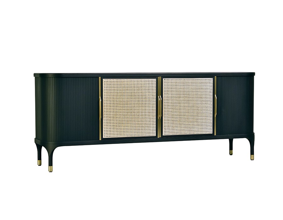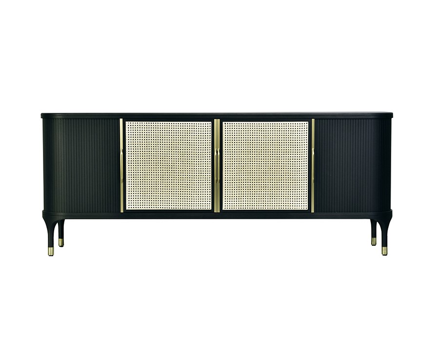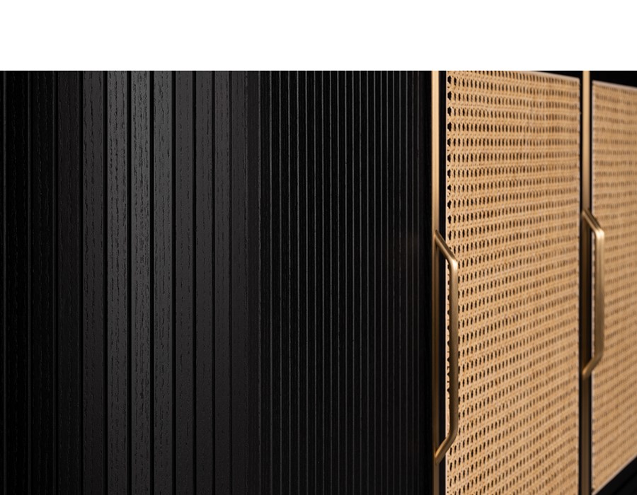 Sideboard in ash wood with glass or stone top and brass handles. Two hinged doors in Vienna straw and two sliding doors.
