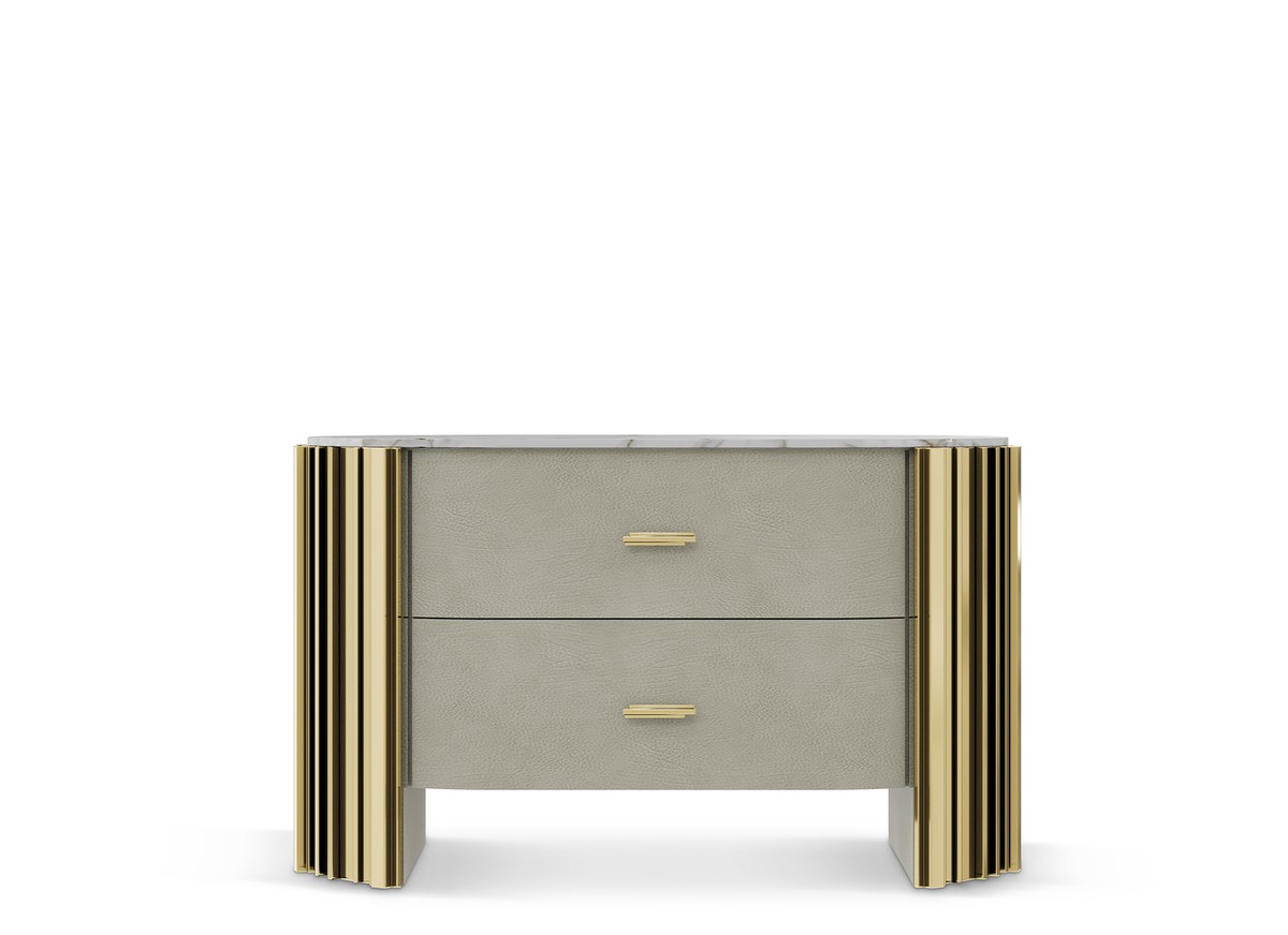 The Algerone Nightstand showcases the distinctive strength and elegance that only marble can offer, bringing a touch of modernity to any bedroom design. With its sleek features and geometric lines, this bedside table serves as the perfect choice, featuring a marble countertop that enhances the overall aesthetic.