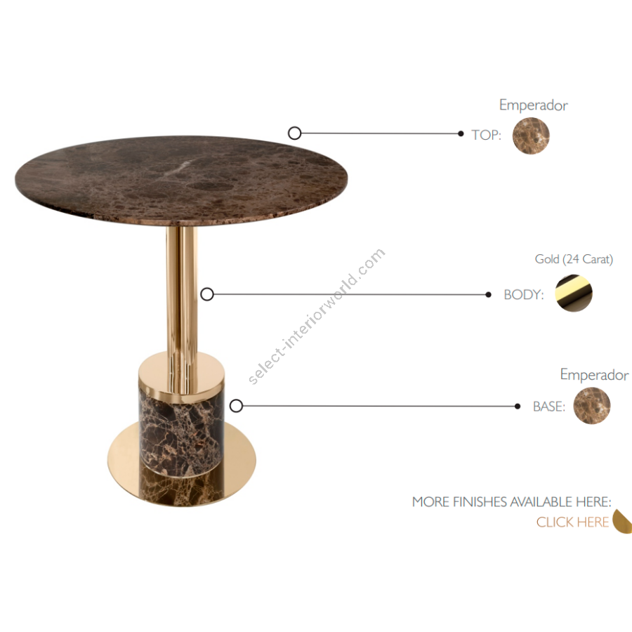 Der Tisch Savoye gilt in seiner Eleganz und Zartheit als unvergleichlich. Die Lifestyle-Designphilosophie von Savoye offenbart zeitlose Anmut gepaart mit einem romantischen Spiel aus Marmor und Messing. Die Kombination aus der zarten Emperador-Marmorplatte und dem im klassischen Stil gestalteten zylindrischen Unterbau mit einem Tablett aus massivem Gold und der vergoldeten Messingstruktur verleiht diesem Stück makellose Perfektion. Jedes künstlerische Element wird von unseren professionellen Handwerkern aus den feinsten ausgewählten Materialien handgefertigt. Die eleganten und ätherischen Details dieses Designs verleihen jeder Inneneinrichtung eine anspruchsvolle Luxusatmosphäre.