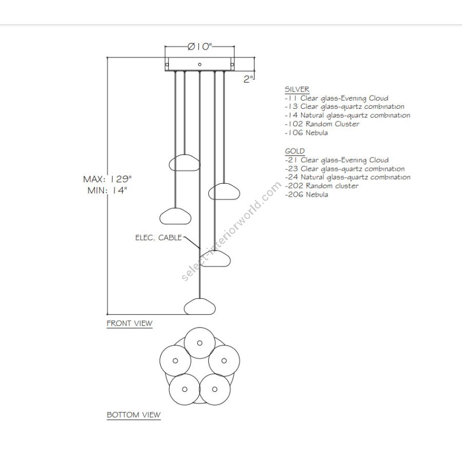 Meisterglashandwerker mischen Quarz mit anderen Mineralien, um einen Tropfenanhänger aus klarem Quarzglas mit platiniertem Blattsilberdach zu schaffen. Auch in goldfarbenem Blattsilber mit einer Auswahl an zusätzlichen Kristallglasoptionen erhältlich. Für 220 V ist der Artikel mit Halogen-G4-Glühbirne(n) ausgestattet.