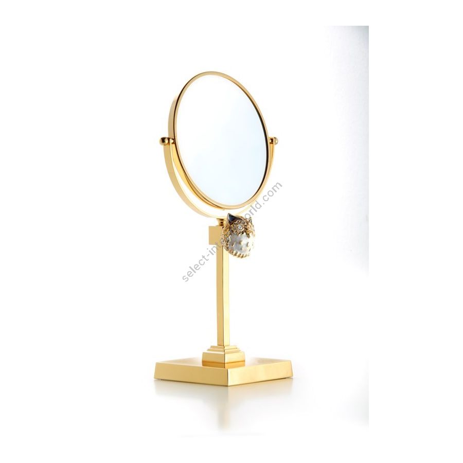 Tischspiegel aus Messing mit Vergrößerung (2x) in Gold 24k mit Mikroguss aus emailliertem Messing OWL. Funktionale Elemente, die ein äußerst elegantes, einladendes und hochwertiges Badezimmer schaffen.